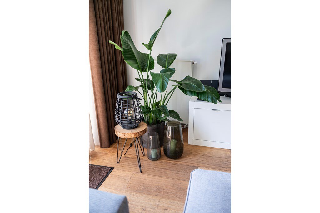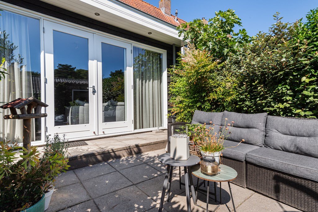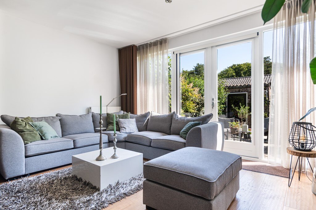 - Tuingerichte woon-, leef- en eetkamer met openslaande deuren