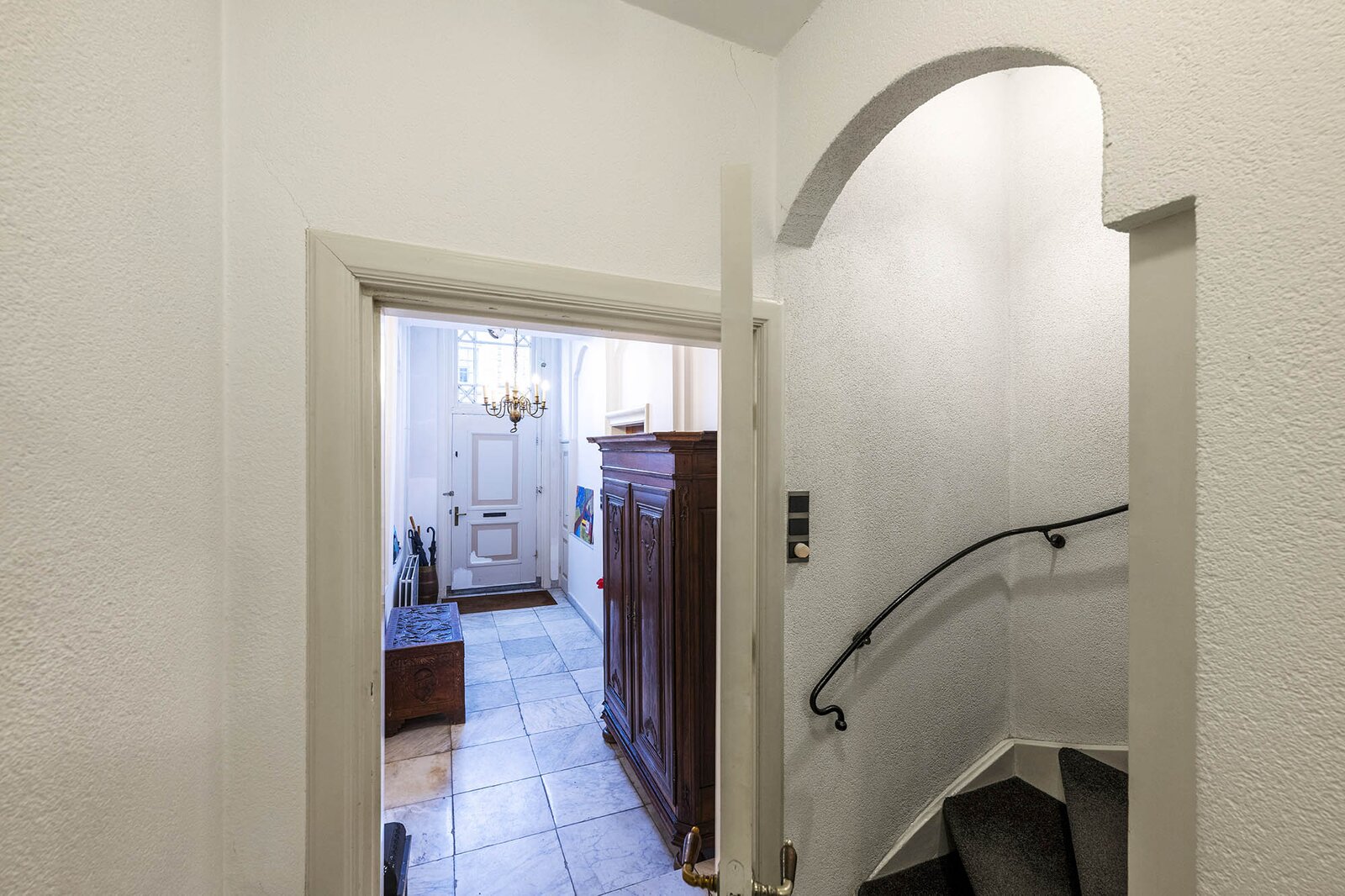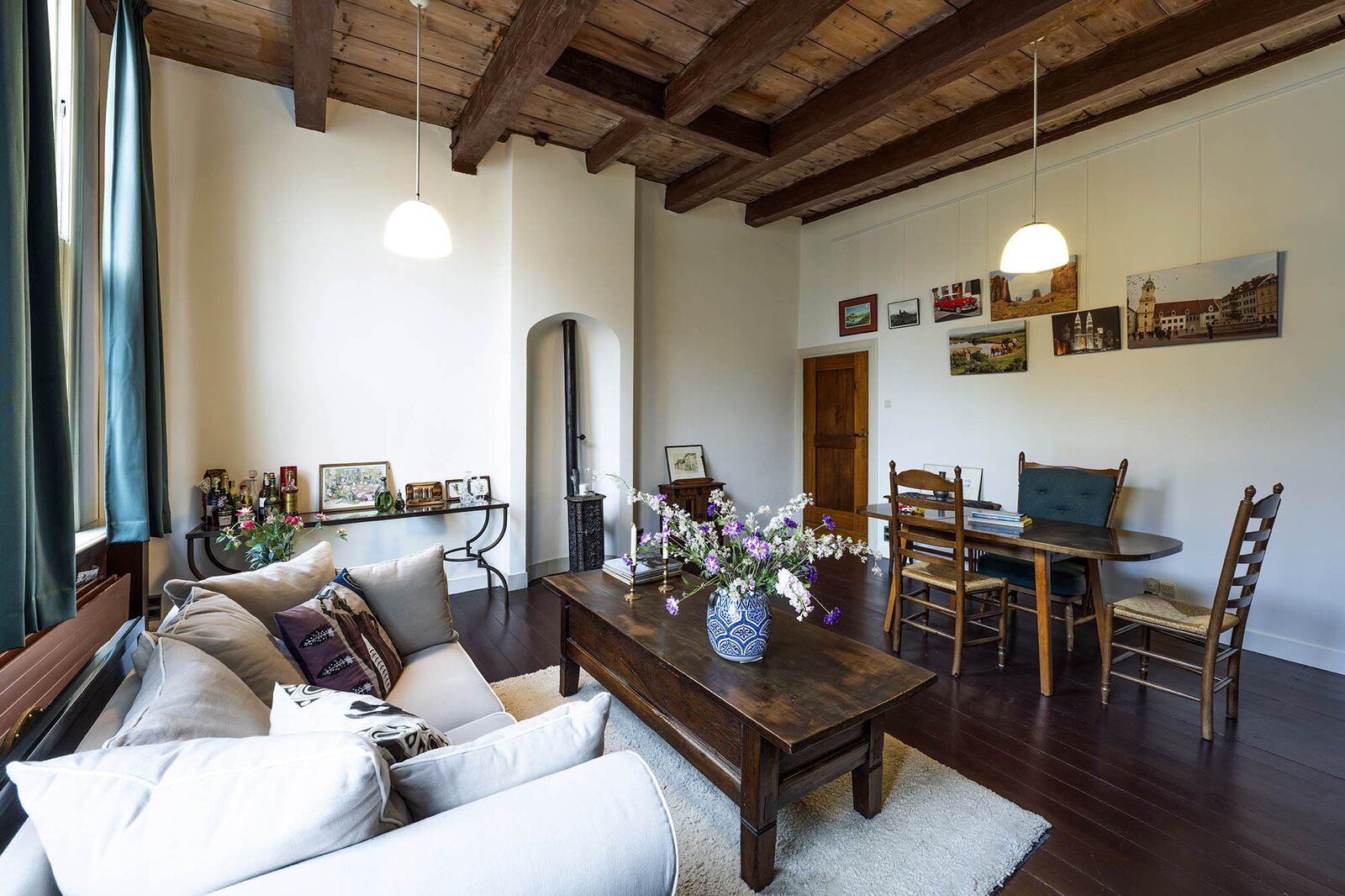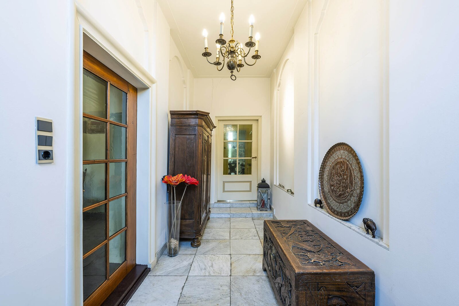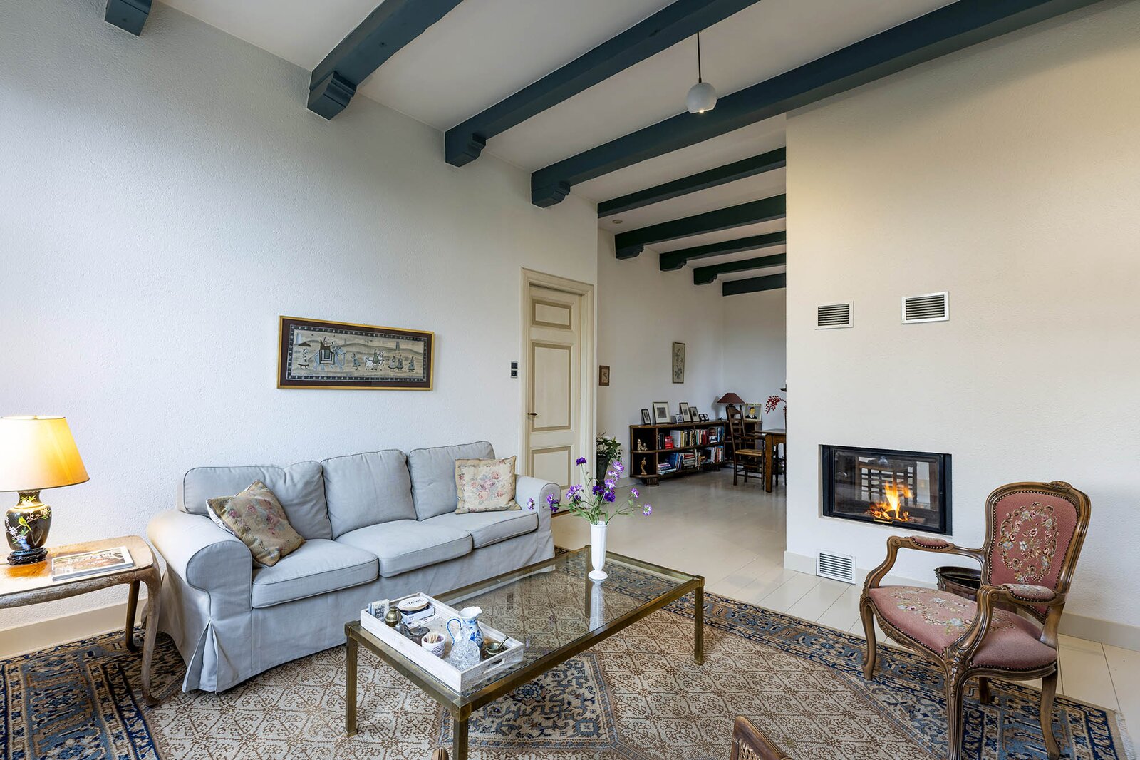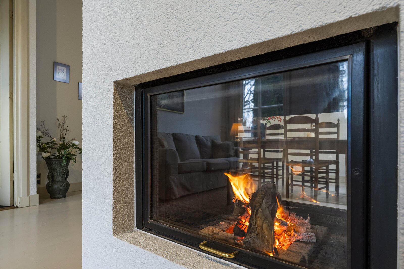 Vanaf de prachtig glimmende voordeur komt u binnen in een grote hal met robuuste marmeren tegels, een antieke kroonluchter en een geornamenteerd plafond. Van hieruit kunt u naar achter lopen richting de keuken of de voorkamer, de zogenaamde ‘herenkamer’, betreden. Hier ervaart u de woning direct in volle glorie, rijk aan elementen kenmerkend voor de VOC-tijd. Zo ziet u het handgemaakte balkenplafond, deels nog het originele getrokken glas in de kozijnen, een authentiek wastafeltje en een antieke kolenkachel. Vanuit deze herenkamer kunt u de eet- en woonkamer betreden. Deze ruimte is voorzien van vloerisolatie. Het eetgedeelte heeft openslaande zijdeuren en een heerlijke doorkijk houthaard naar het woongedeelte. Het woongedeelte biedt een ultiem wooncomfort met zicht op de achtertuin door de grote en hoge raampartijen.