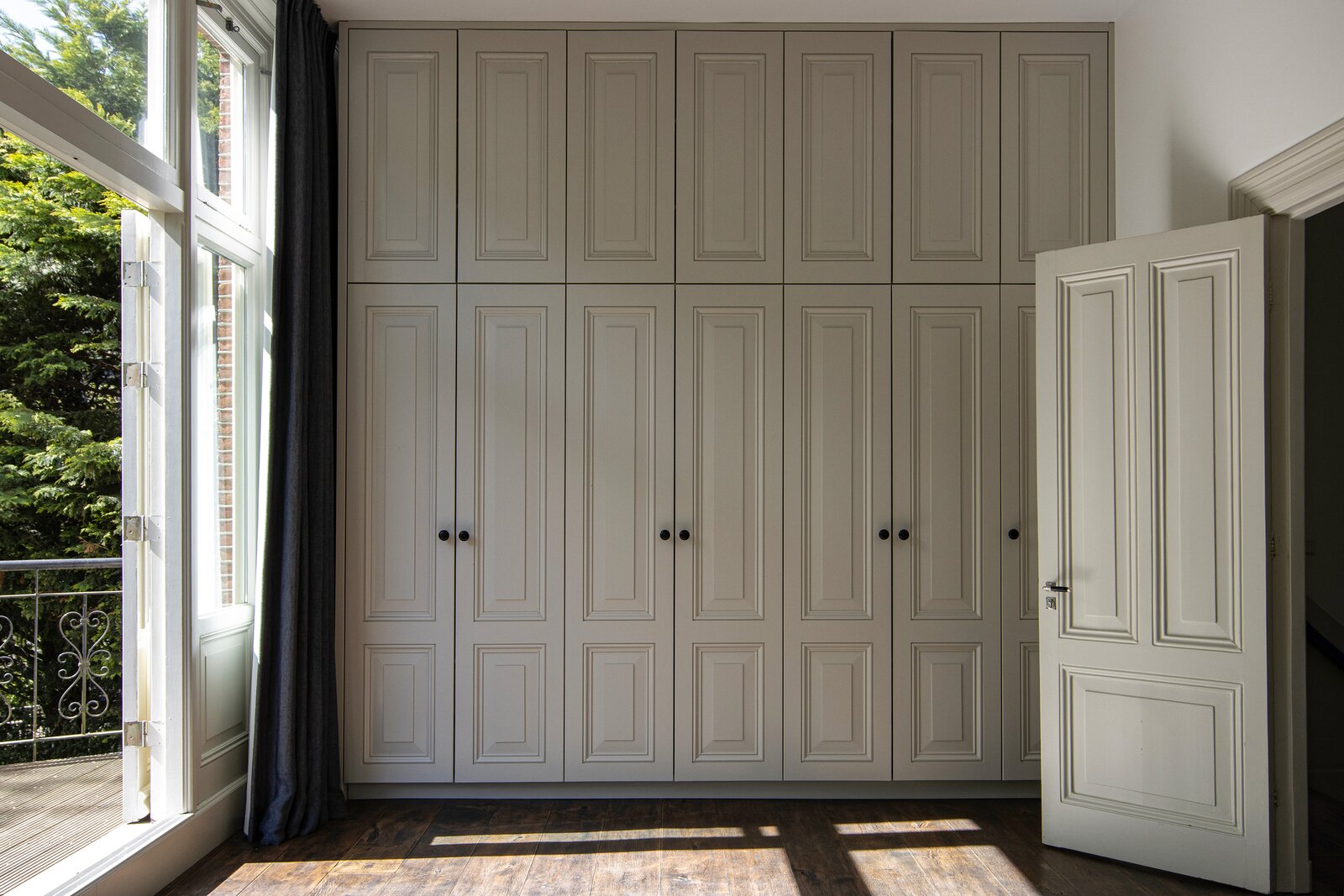 Indrukwekkende ouderslaapkamer over de volle breedte met groot balkon aan het park en eigen badkamer met douche. Overloop met separaat toilet en tweede ruime slaapkamer, eveneens met uitzicht op het park.