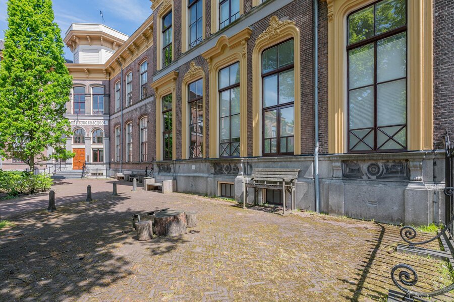 Een uniek en prachtig Rijksmonument! Dit riante herenhuis met zes woonlagen maakt onderdeel uit van een serie stadsvilla's die zijn gerealiseerd binnen het gebouw van de voormalige Rijks HBS Kamerlingh Onnes. De woning is gesitueerd op de hoek van het complex aan de Nieuwe Kijk in't Jat straat en de Grote Kruisstraat.