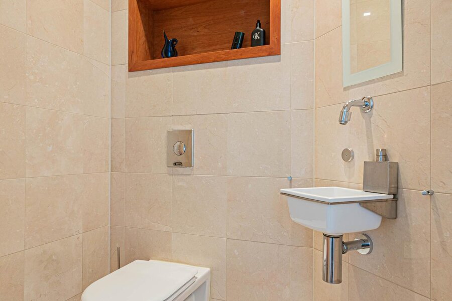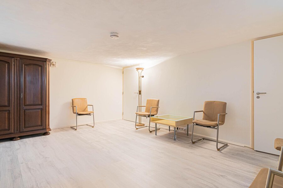 De woning beschikt daarnaast over een ruime kelder die als sportruimte of logeerkamer dienst kan doen. Deze kelder hee een eigen badkamer met wastafel, inloopdouche en toilet.