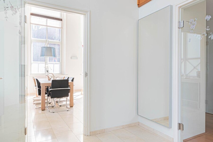 Via het trappenhuis komt u op de tweede mezzanine. Deze is met glazen wanden afgesloten zodat er geen geluid van aangrenzende verdiepingen te horen is, maar deze wel profiteren van de lichtinval.