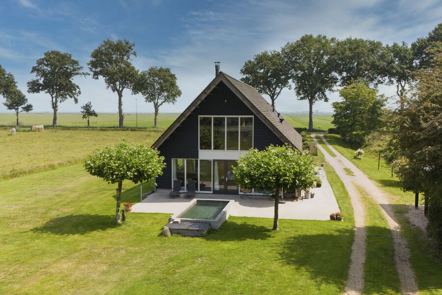 De houten woning is volledig duurzaam gebouwd, de vorm is geïnspireerd door de voormalige woonboerderij die zich op het perceel bevond.