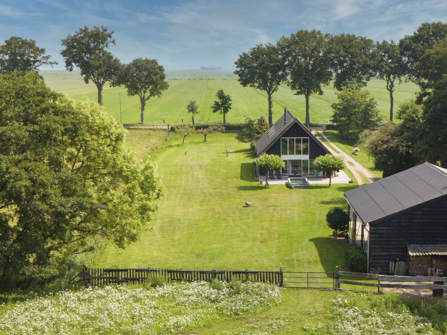 Achterop het perceel staat de voormalige hooischuur, in het midden is een container geplaatst welke thans in gebruik is als atelier. De linkerzijde van de overkapping is ingericht als garage voor twee auto’s, aan de rechterzijde een gezellige veranda met een prachtig weids uitzicht op tuin en de omliggende weilanden.