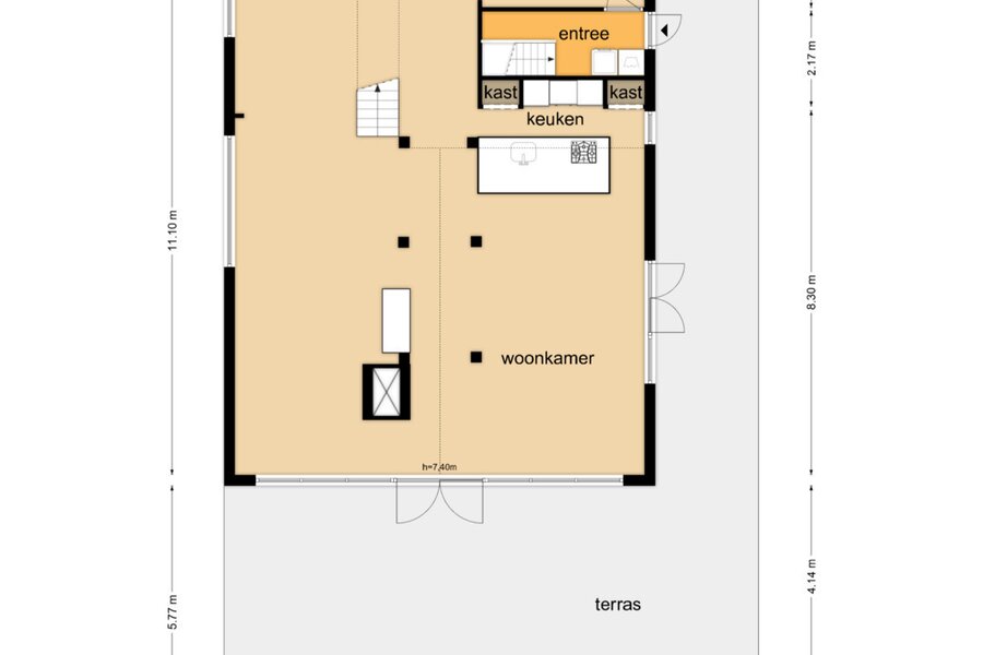 Zij-entree met toilet en garderobe. Bijkeuken met opstelling wasmachine/droger, bergkast en luik met trap naar de kelder. Riante open living met zitgedeelte, open haard en openslaande deuren naar de achtertuin, eetgedeelte met openslaande deuren naar de zijtuin. De moderne lichte open keuken is voorzien van diverse inbouwapparatuur waaronder een Quooker kraan.