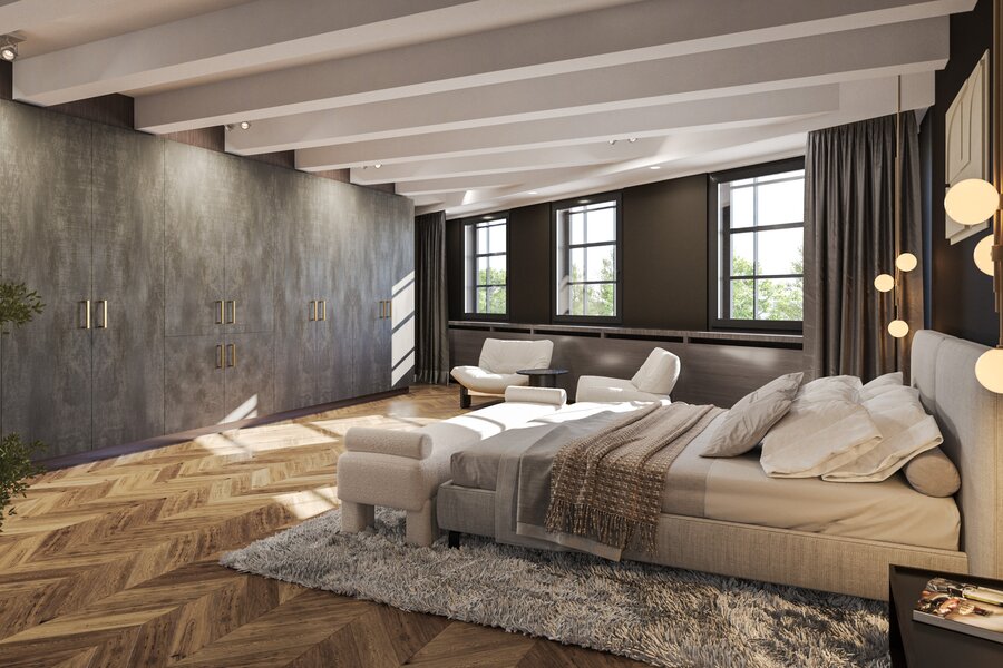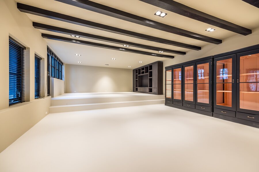 De eerste verdieping is ingedeeld met een zeer ruime master-bedroom, een ruime badkamer en een aparte kleedkamer welke volledig is ingericht met kleding- en accessoireskasten.