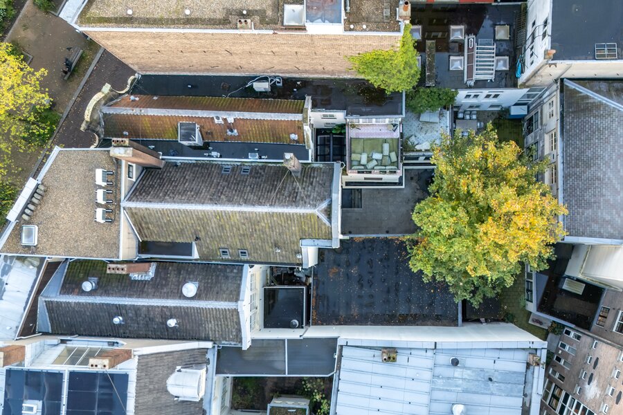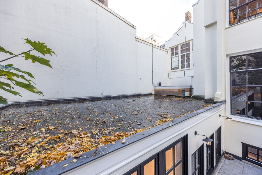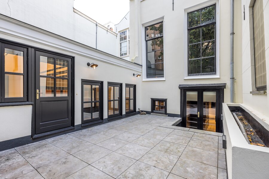 The house features approximately 505 m² of living space spread across five full floors. At the rear, it offers a beautifully tiled inner garden. Additionally, a roof terrace can be constructed at the back on part of the ground floor; a permit for this has already been granted by the Municipality of Amsterdam.