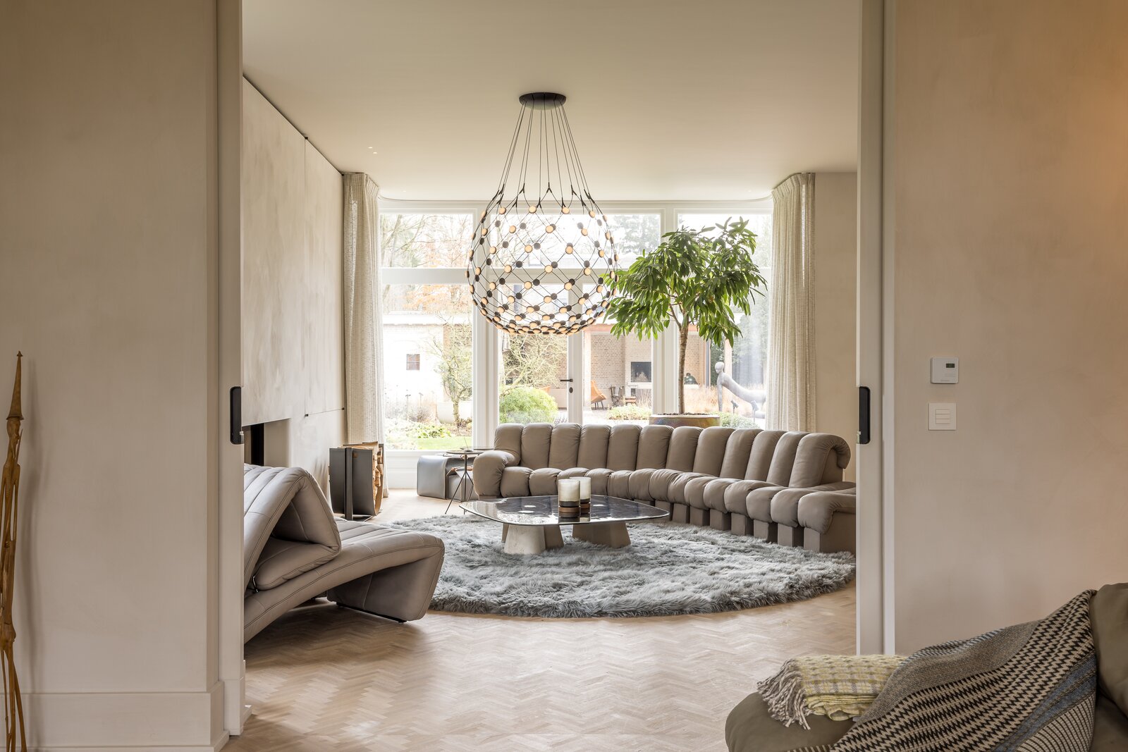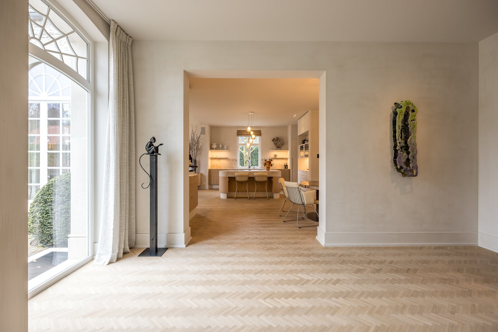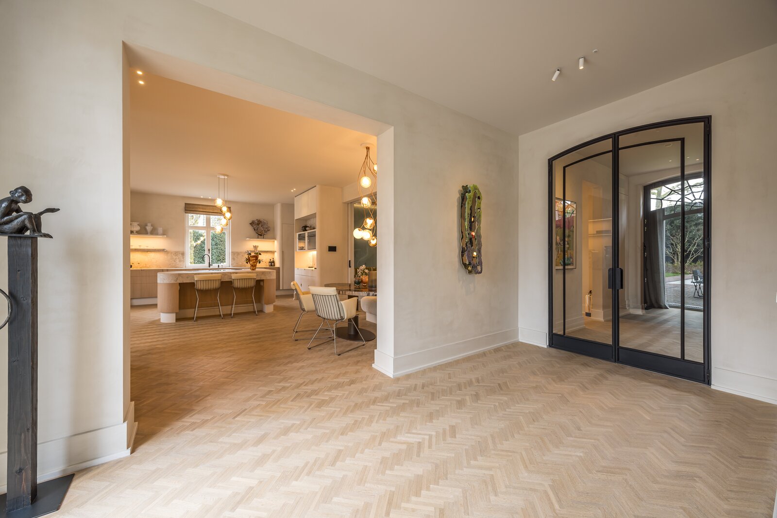 Via de imposante entree betreedt u een statige hal met elegante trappartij, royale garderobe en gastentoilet. De toon is direct gezet: ruimtelijk, stijlvol en verfijnd.