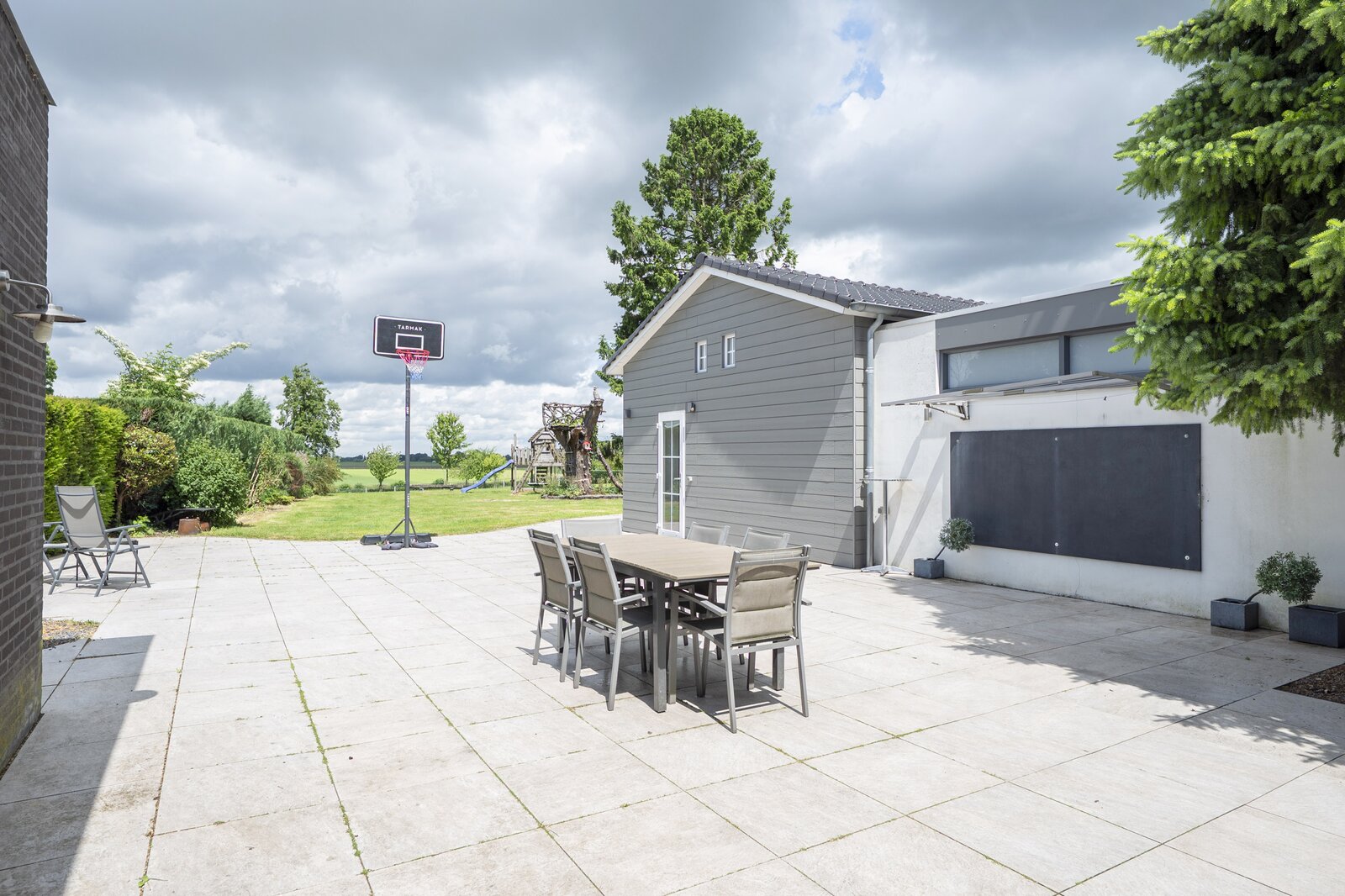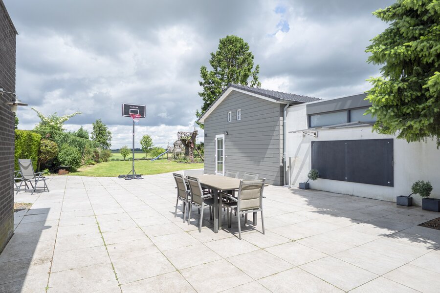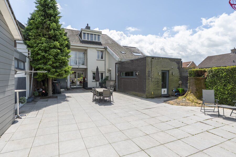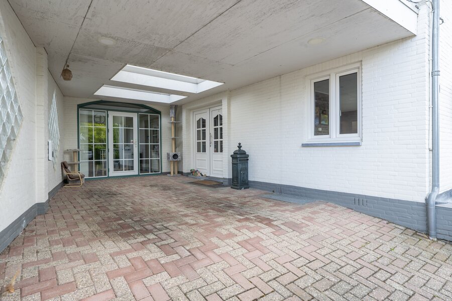 het pand beschikt over een ruime oprit welke deels is uitgerust met een carport. Ook voor de kelder bestaat de mogelijkheid om te parkeren. De achtertuin is ingedeeld met een riant terras en gazon. De kracht van de achtertuin is terug te vinden in een uniek uitzicht. Dankzij de vrije ligging aan de achterzijde geniet men hier dagelijks van rust en een weids uitzicht.