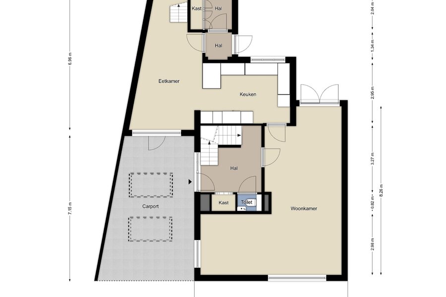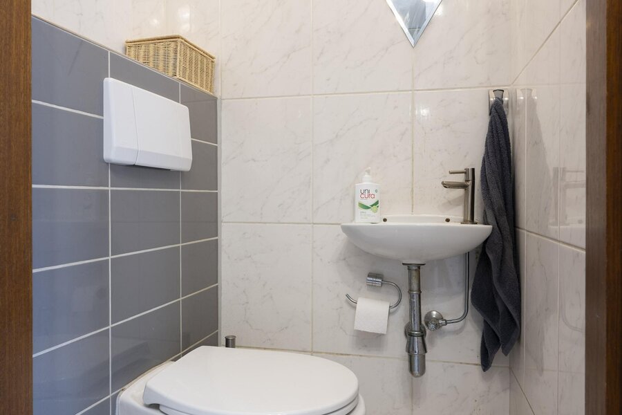 de hal/entree met meterkast (slimme meter, 10 groepen, 3x aardlek en krachtstroom) en toilet biedt toegang tot het woongedeelte.