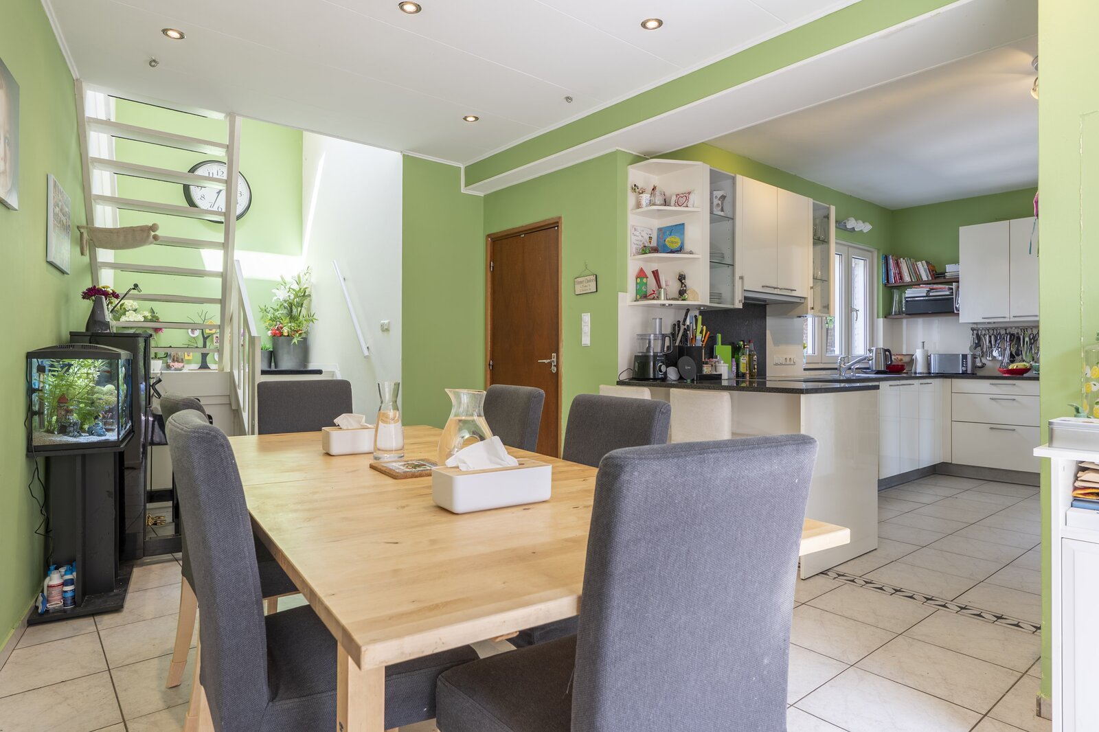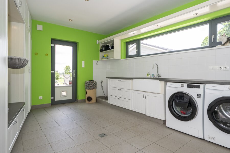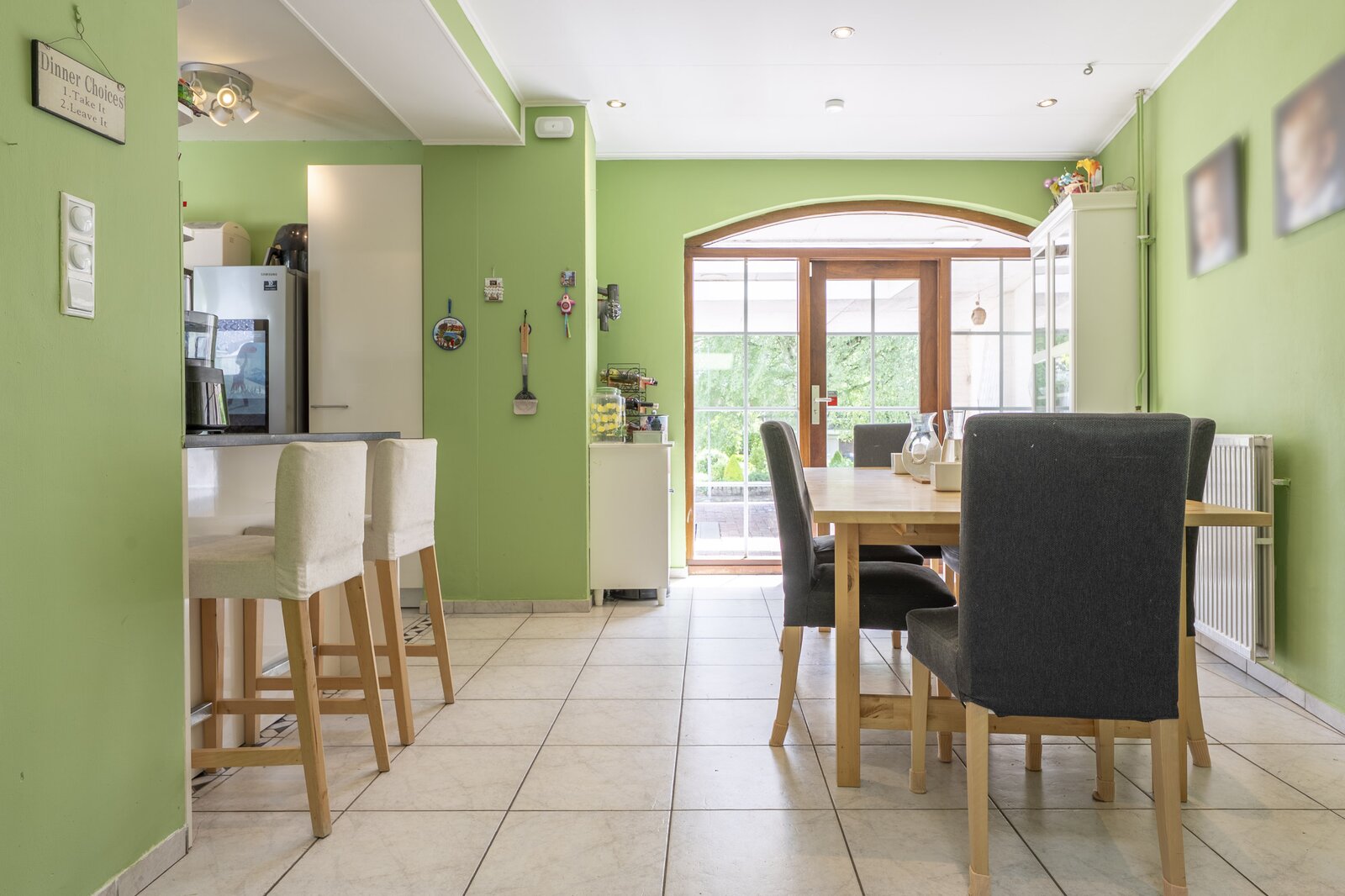 De keuken is uitgebreid door de voormalige garage bij de ruimte te trekken. Door deze extra ruimte is het mogelijk om een grotere eettafel in de keuken te plaatsen. Vanuit deze ruimte is de bovengelegen zolder bereikbaar welke prima kan fungeren als opslag, hobbykamer of kantoor. Ook de bijkeuken is middels de eetkamer bereikbaar. Deze ruimte is naast de aansluitpunten voor het witgoed uitgerust met vaste kastenwanden en een keukenblok. Kortom een ideale ruimte om alles op orde te krijgen voor grotere gezinnen. Tevens is de achtertuin direct bereikbaar door de aanwezige buitendeur.