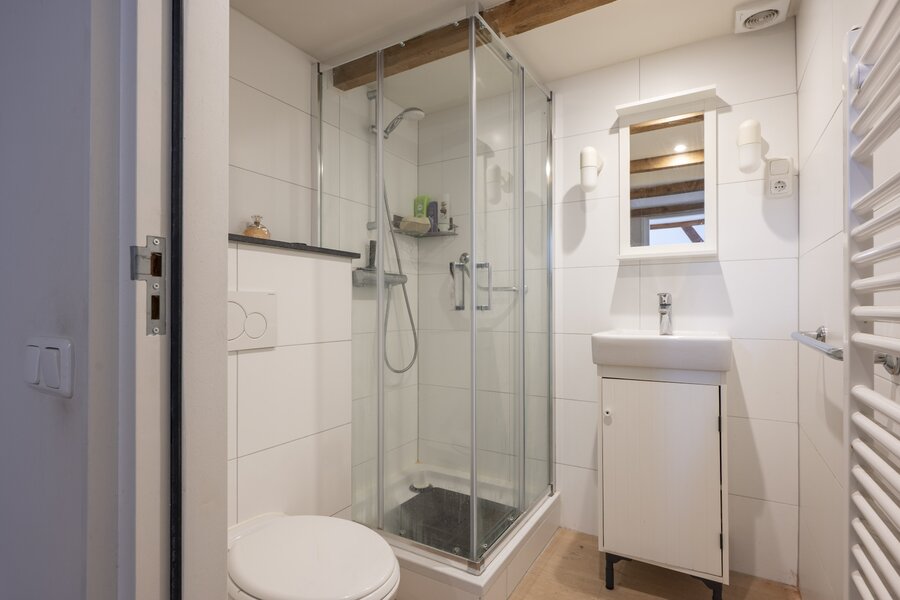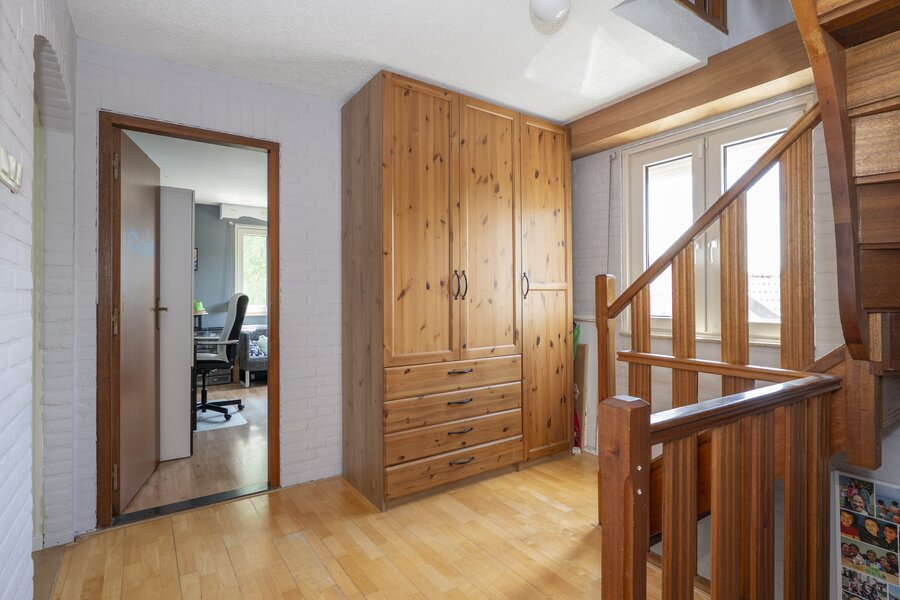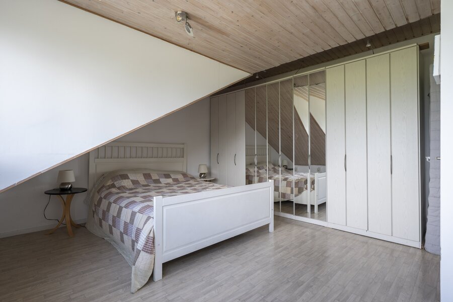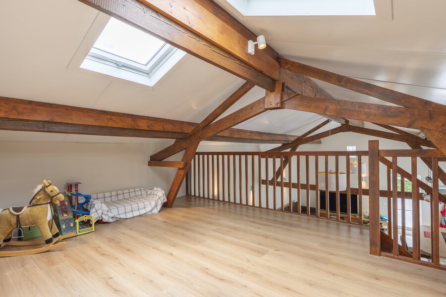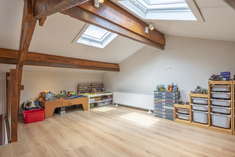 De gehele zolderverdieping is (m.u.v. badkamer) afgewerkt met een laminaatvloer.