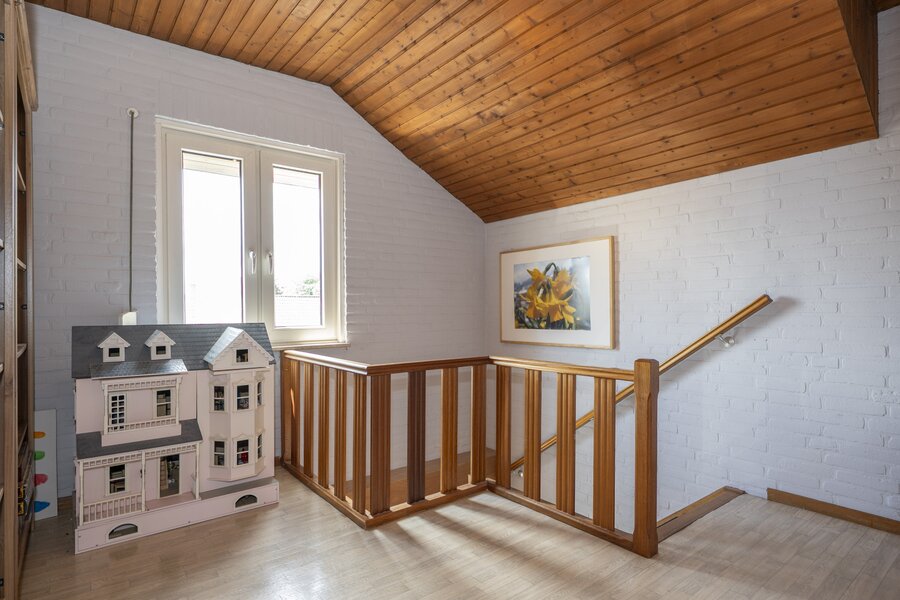 de ruime overloop biedt toegang tot 3 slaapkamers en een badkamer, respectievelijk groot: