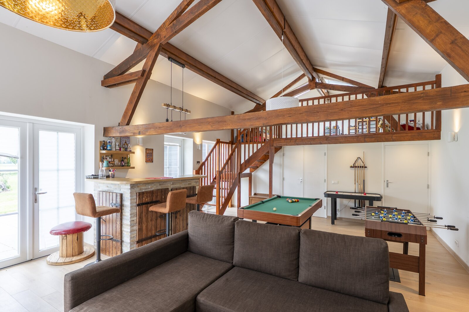 het buitenverblijf is sfeervol te noemen door de zichtbare houten dakconstructie. Er is vanuit het leefgedeelte een prachtig uitzicht over de achtertuin en de achtergelegen landerijen. Door de aanwezigheid van de extra verdieping en sanitair bestaat de mogelijkheid om er echt te verblijven in het buitenverblijf. Er is tevens bergruimte aanwezig om tuingereedschap e.d. te kunnen stallen.