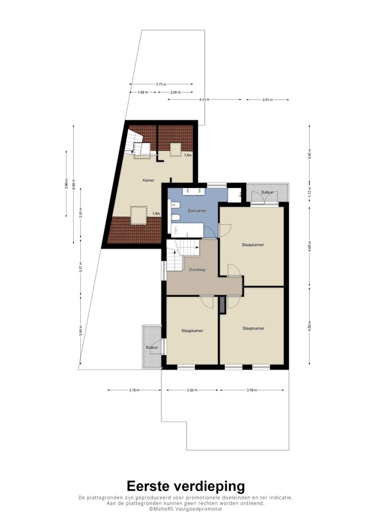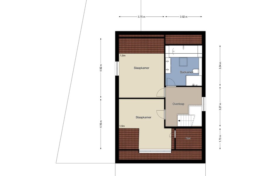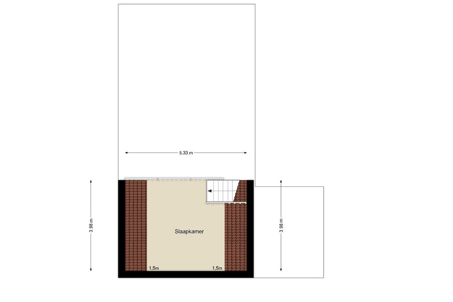 - slaapkamer 5: x m, met een dakkapel en gelegen aan de achterzijde van de woning