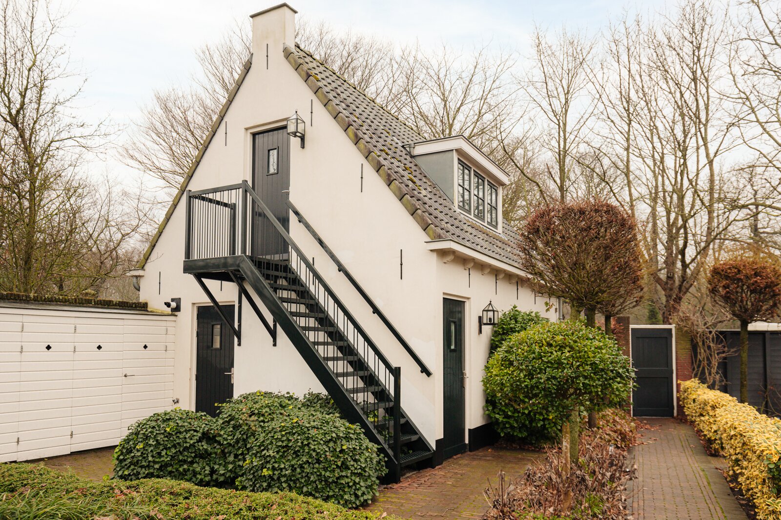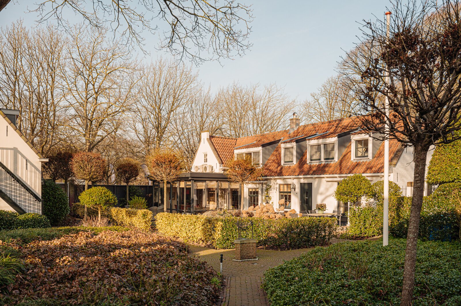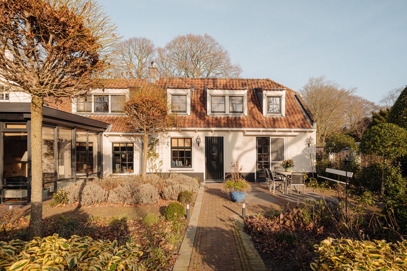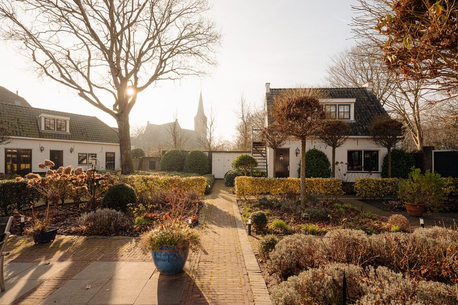 The property consists of a main residence at Berkheistraat 21, a detached double garage with guest accommodation on the upper floor, and an almost fully detached residential/office building at Berkheistraat 17. The architect-designed garden features attractive terraces, landscaped greenery and winding pathways. The view from the garden towards the historic village church is truly exceptional and captivating.