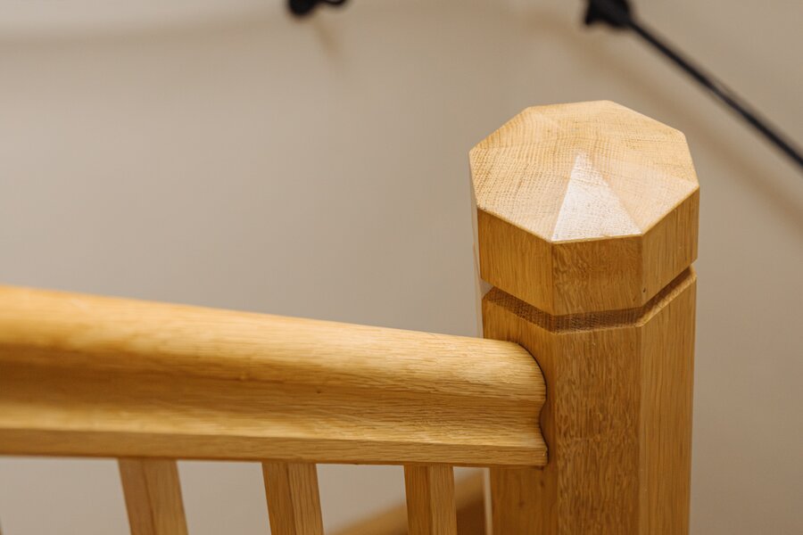 Via the staircase and mezzanine, the sleeping area is reached, with an adjoining fully equipped bathroom featuring a toilet, washbasin and walk-in shower.