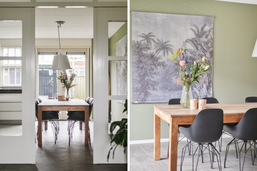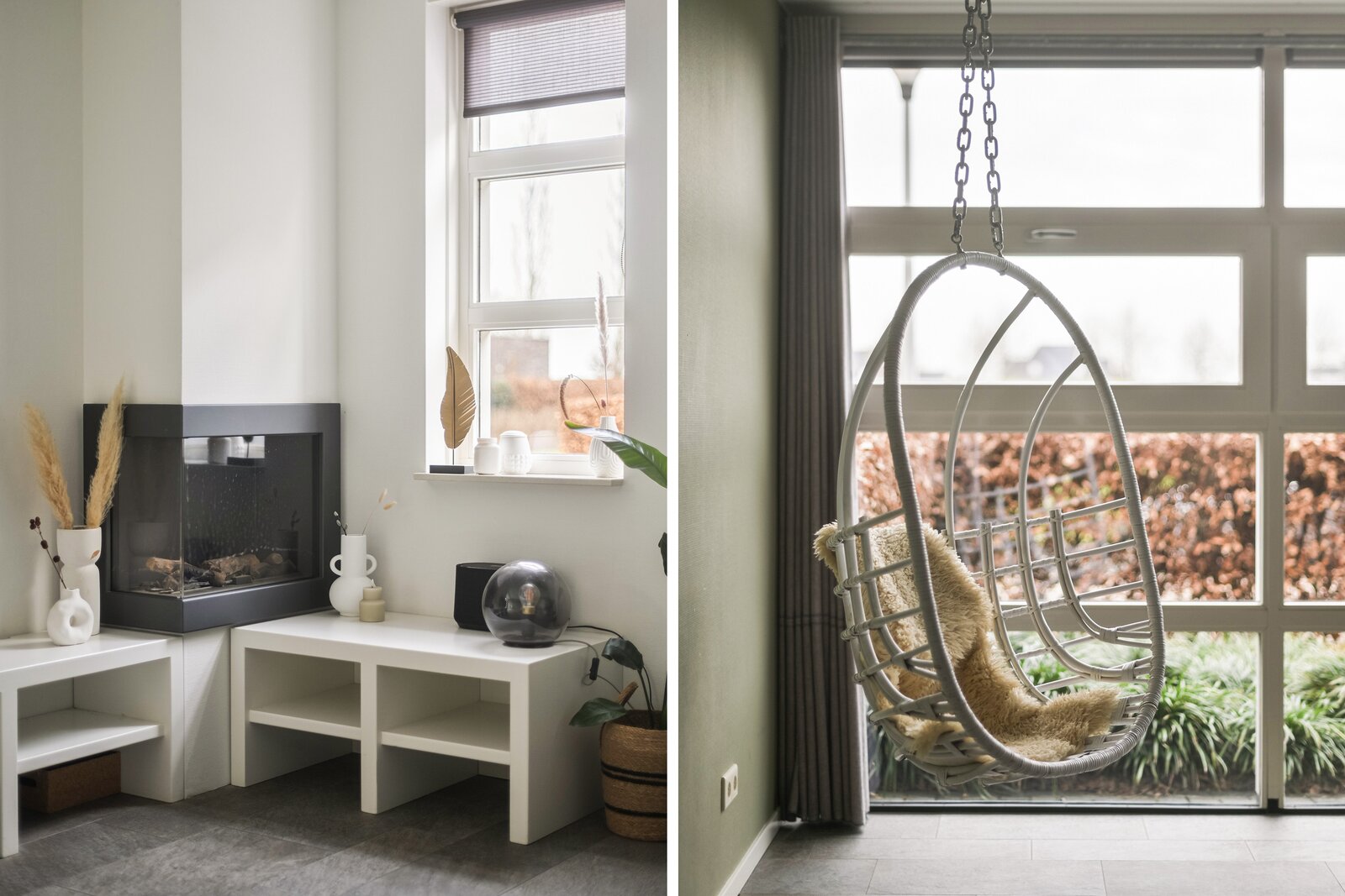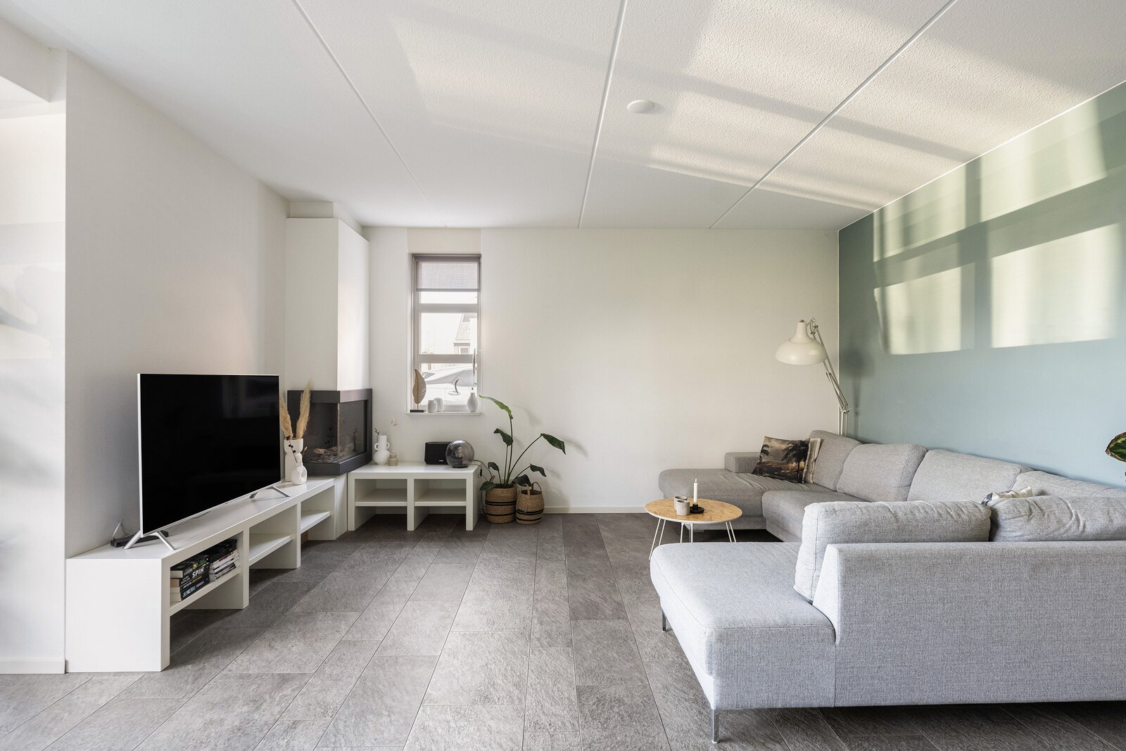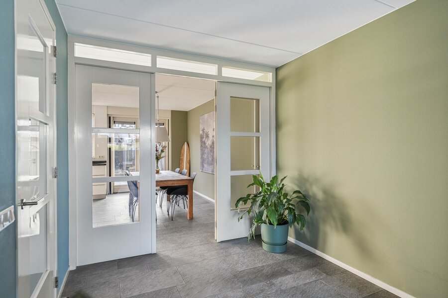 Entree, hal met modern toilet en binnendoor naar de berging (garage), de meterkast, de trapopgang en de trapkast. Je komt binnen in de verrassend ruime woonkamer, een fijne grote living voorzien van een grote erker, een haard en veel lichtinval. De suitedeuren zorgen voor een stijlvolle scheiding van de keuken en de woonkamer. De woonkeuken vind je aan de achterzijde, er is genoeg ruimte voor een grote eettafel met stoelen. Het is een fijne plek om heerlijk met elkaar te eten, bij te kletsen of nog wat werk te doen. De keuken is voorzien alle benodigde inbouwapparatuur. Er is een binnendoor naar de berging en er zijn openslaande deuren naar de achtertuin.