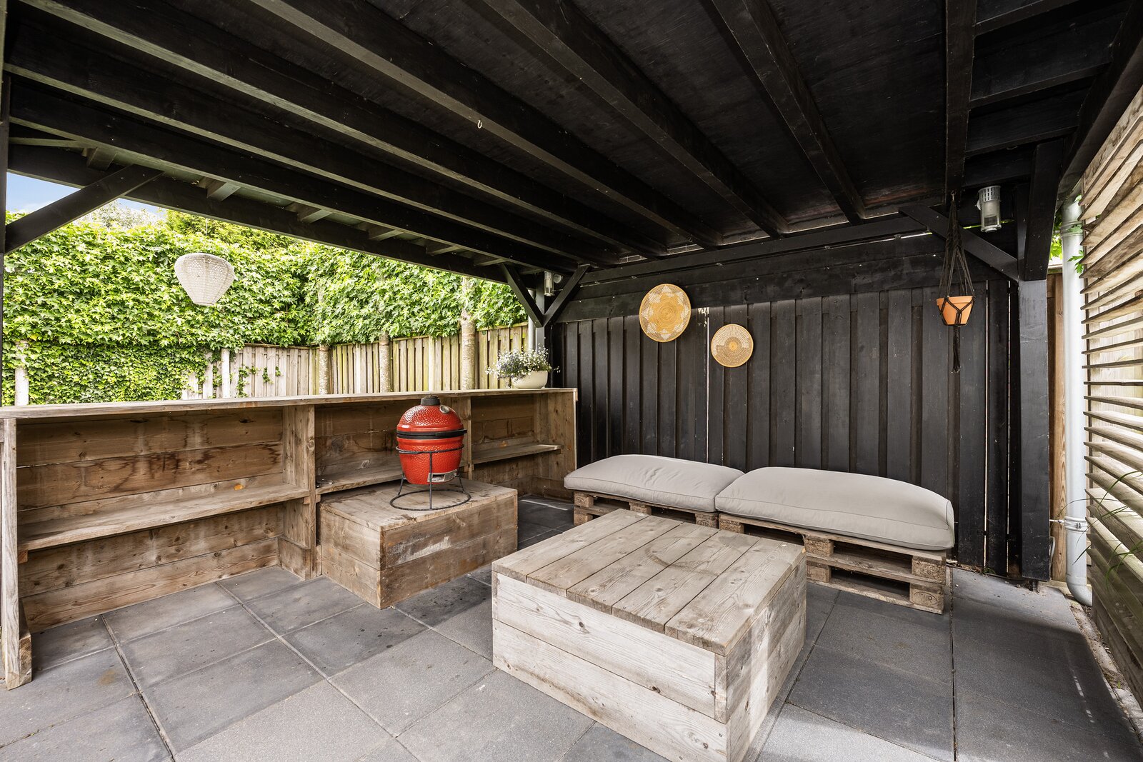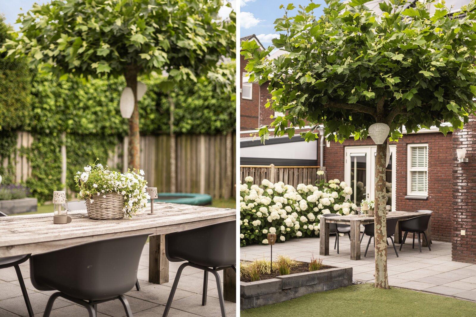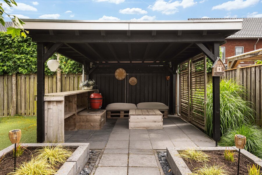 De tuin die bij deze woning hoort is eveneens een plaatje! De voortuin is netjes onderhouden en voorzien van veel groen. Er is een oprit voor het parkeren van de auto(‘s) op eigen terrein. De achtertuin is fraai aangelegd en voorzien van een zonneterras, een veranda en een speelgazon. Er is lekker veel groen in de tuin en daardoor ook genoeg privacy. De ligging op het zonnige zuiden is perfect! Hier kun je van vroeg in het voorjaar tot laat in het najaar heerlijk buiten zitten. De veranda is een fijne extra, een overkapping in de tuin die op warme zomerdagen zorgt voor schaduw en de rest van het jaar juist voor een fijne beschutte plek. Er zijn borders met groene planten en bloemen én er is een achterom.