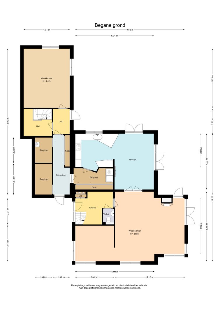 De volledig aangebouwde en onderkelderde kantoor-/praktijkruimte met eigen entree maakt dit object uitermate geschikt voor professioneel gebruik aan huis, een exclusief gastenverblijf of een stijlvolle Bed & Breakfast.