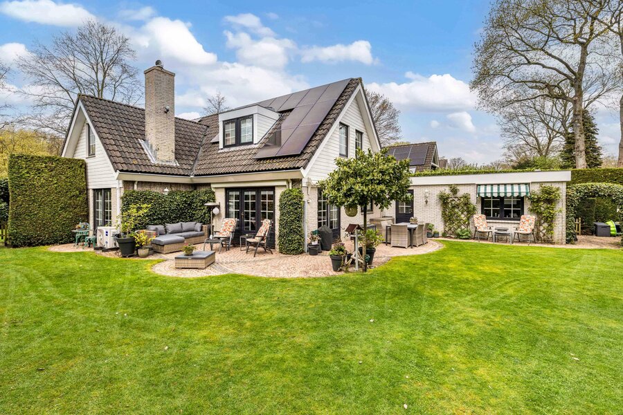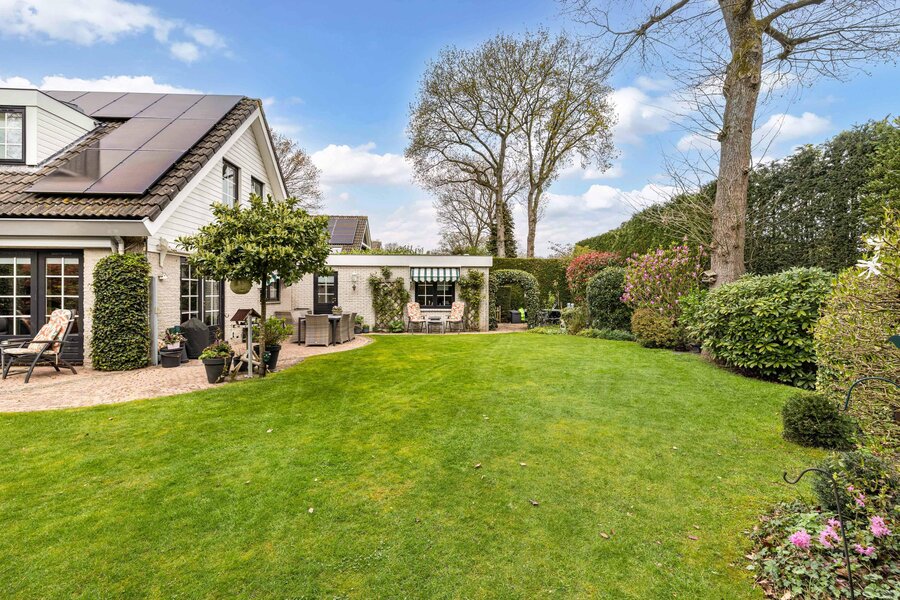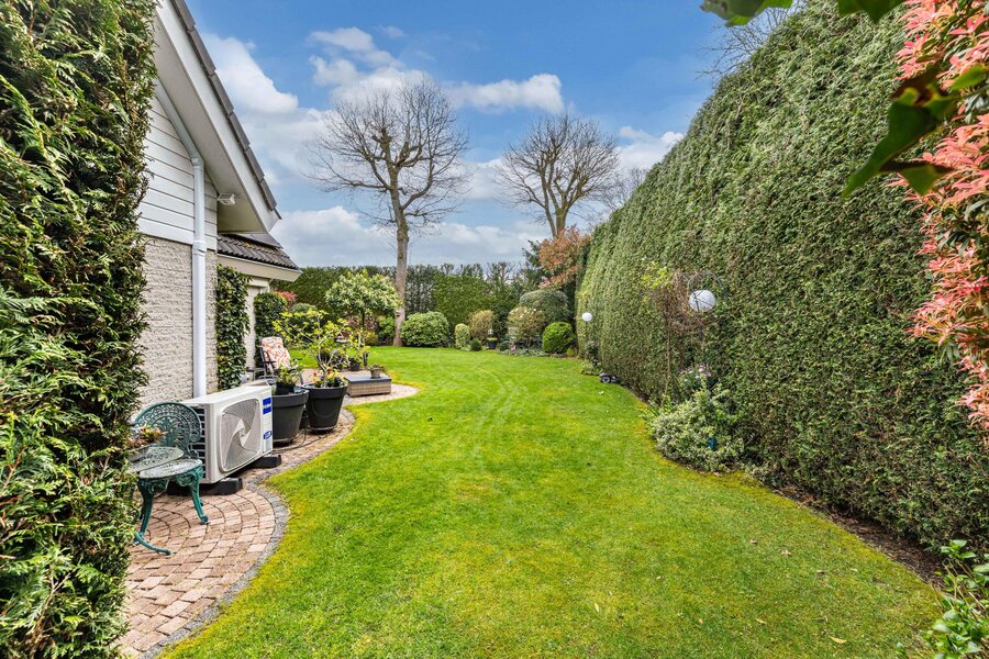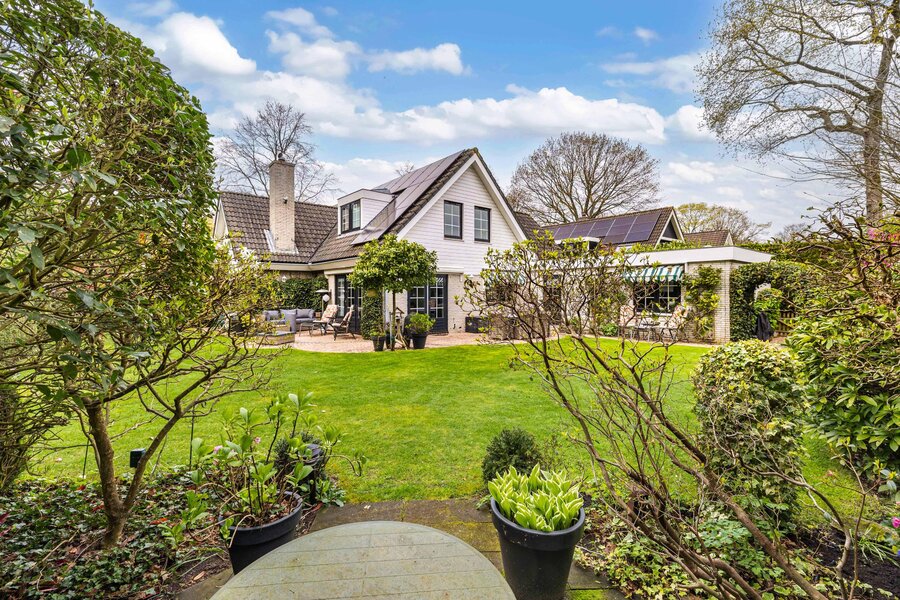 Een woning die uitblinkt in allure, privacy en comfort, omgeven door een sfeervolle, fraai aangelegde tuin met maar liefst drie zonovergoten terrassen.