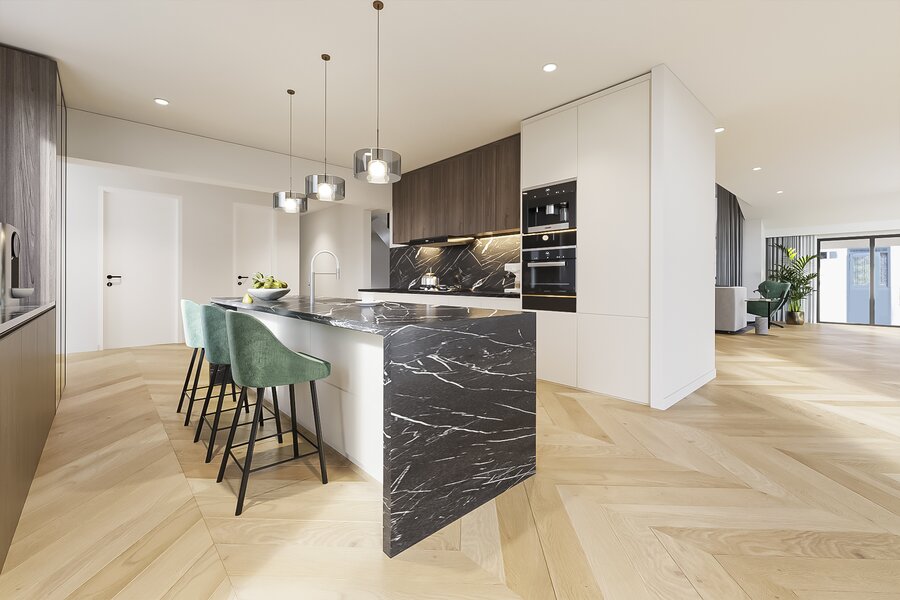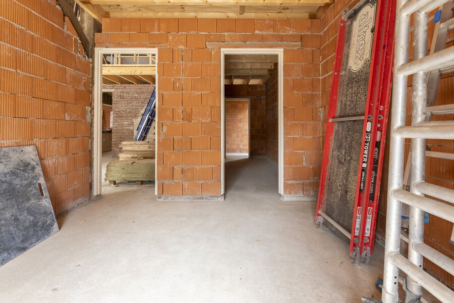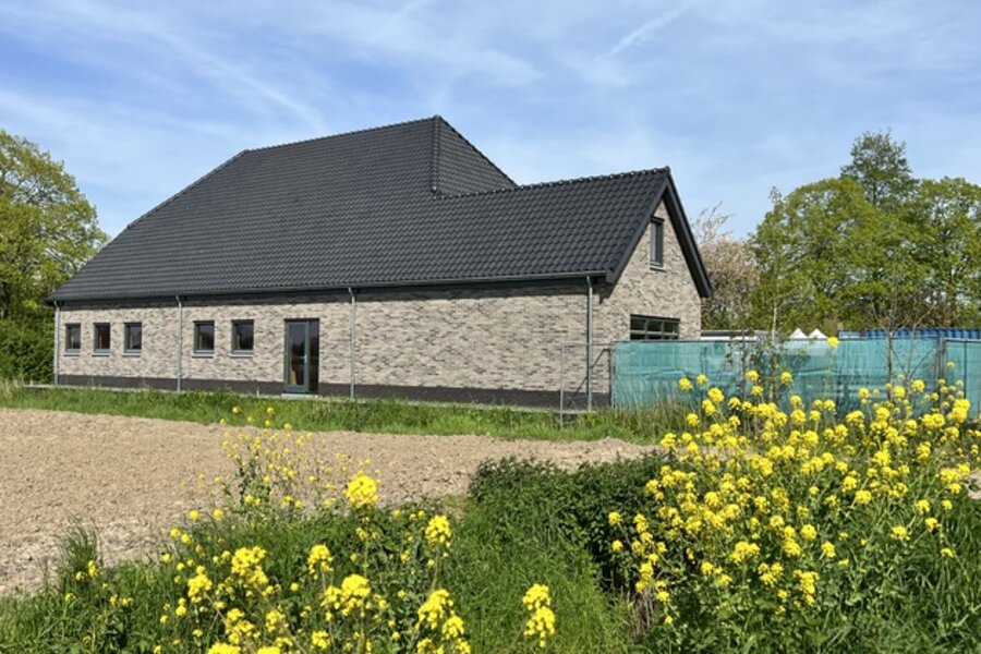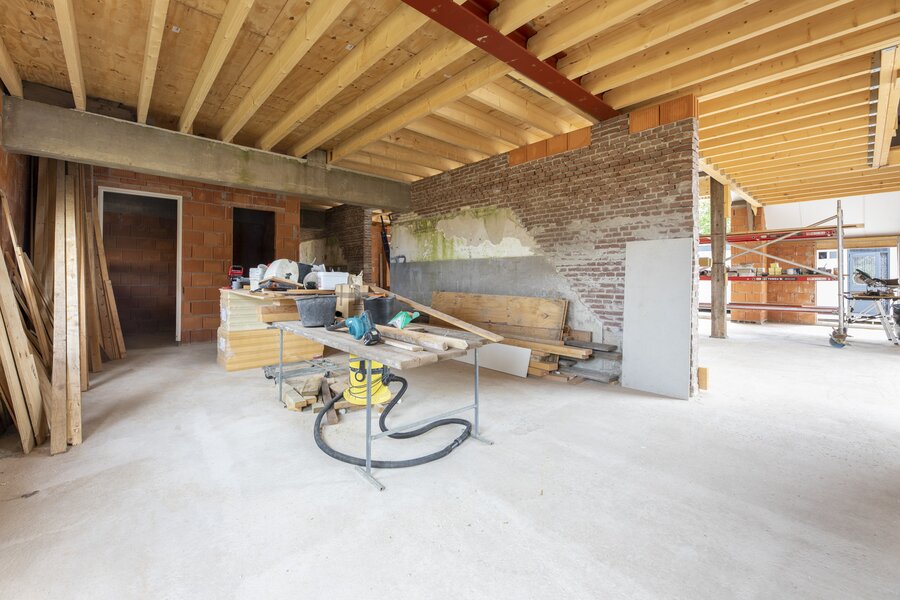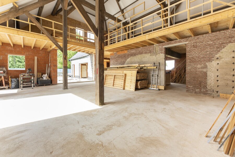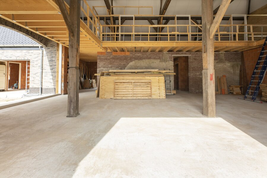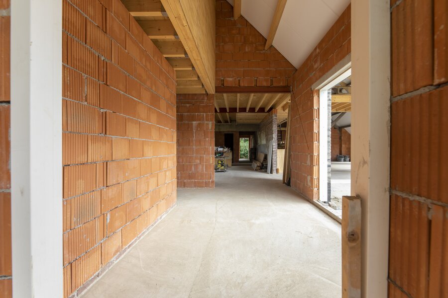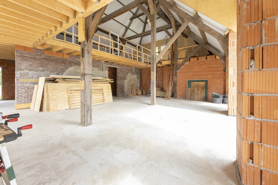 Vanuit de hal bereik je de royale woonkeuken met ramen die uitkijken over de landerijen. De keuken wordt casco opgeleverd, zodat je deze geheel naar eigen inzicht kunt vormgeven – van een landelijke leefkeuken tot een strakke designopstelling, desgewenst met royaal kookeiland.