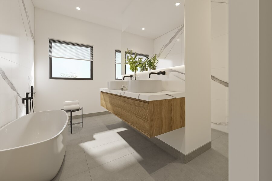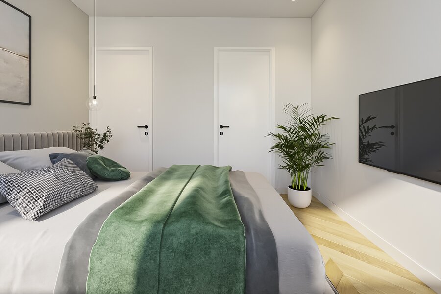 Op de verdieping is ruimte voor het hele gezin. Hier kunnen vier comfortabele slaapkamers en een tweede badkamer worden gerealiseerd. Dankzij drie vides stroomt het licht royaal naar binnen en ervaar je overal een gevoel van openheid. Op de overloop is plaats voor een fijne werkplek; vanaf hier bereik je ook de zolder van het voorhuis.