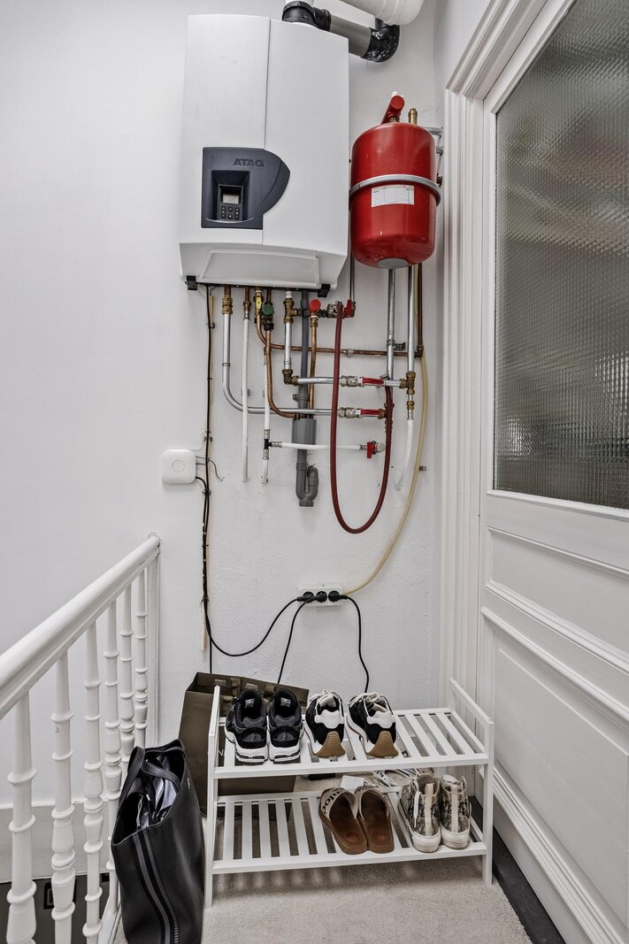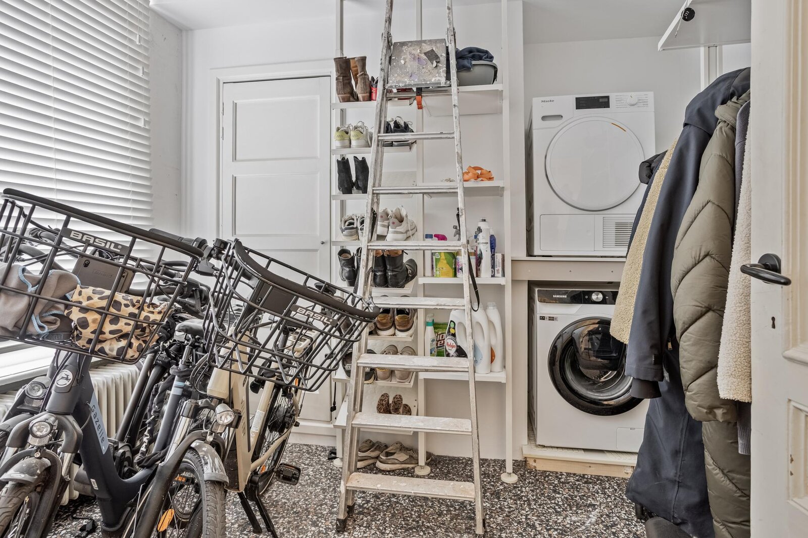 Wat opvalt is de grote hoeveelheid bergruimte te beginnen met een grote berging aan de linkerkant van de hal waar u eveneens de meterkast en de opstelplaats van de wasmachine en droger kunt vinden.