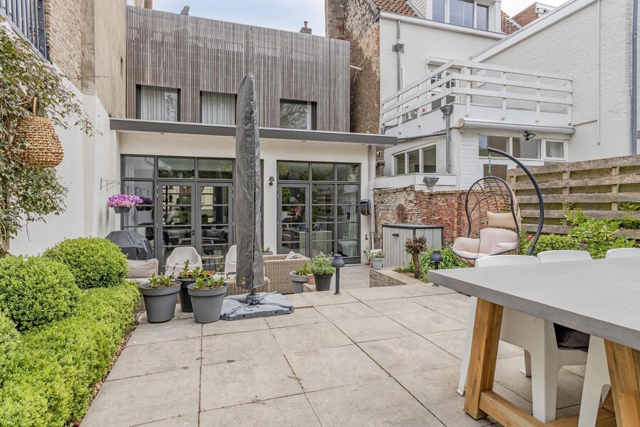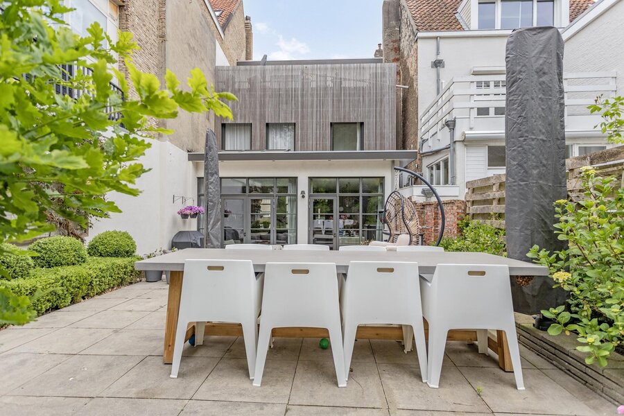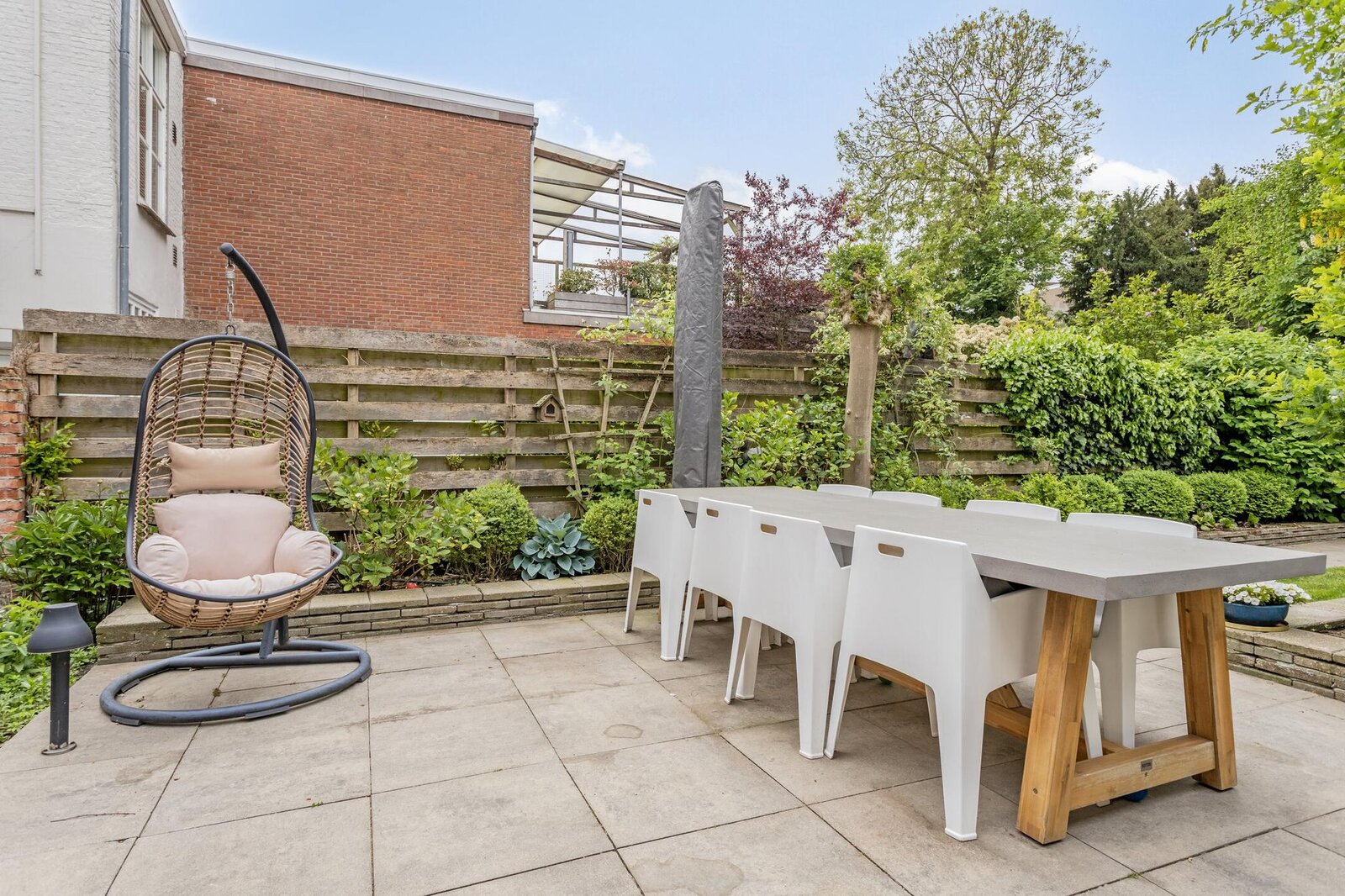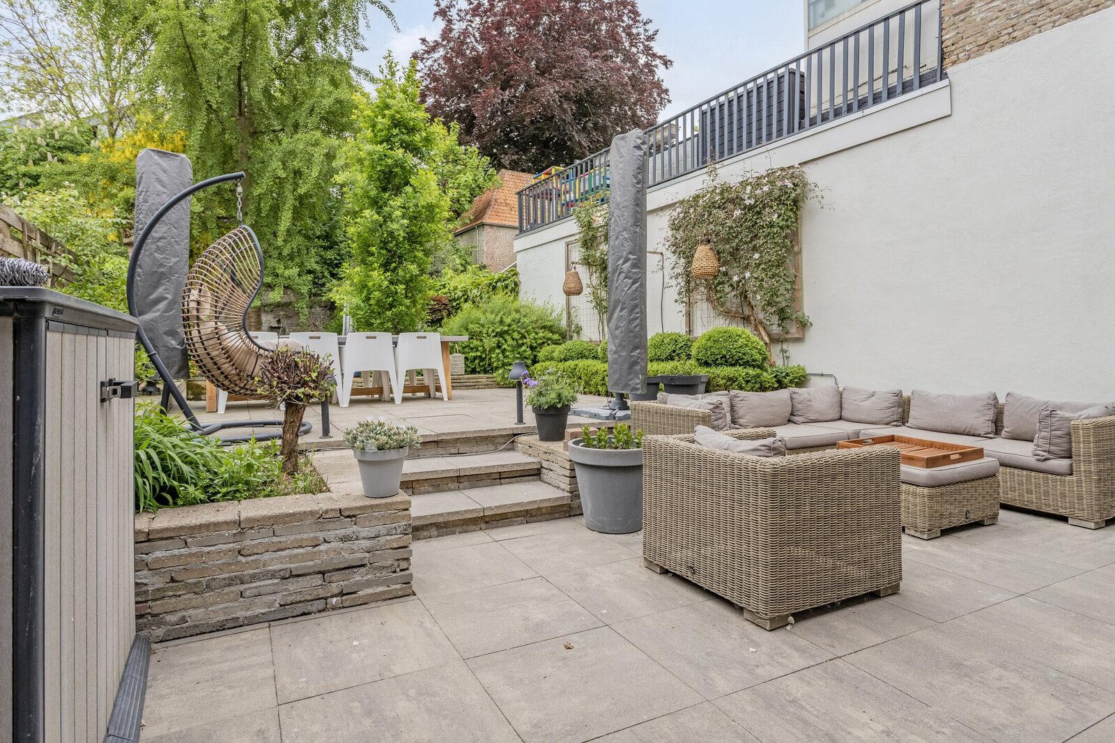 Verschillende zitplekken, volwassen beplanting en een zorgvuldig gekozen indeling zorgen voor een intieme buitenruimte waar elk seizoen zijn charme heeft.