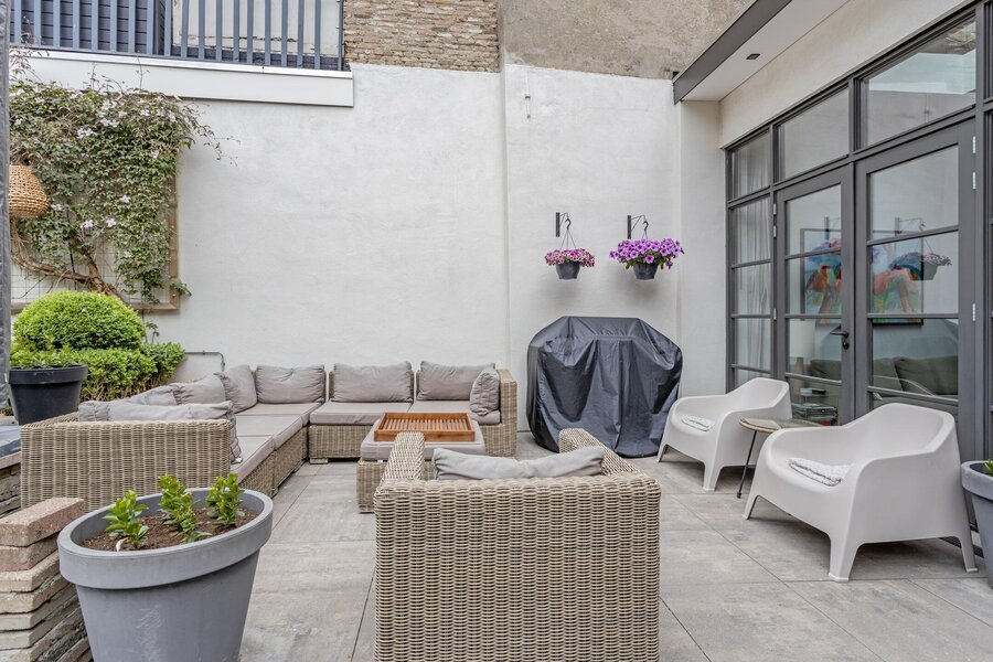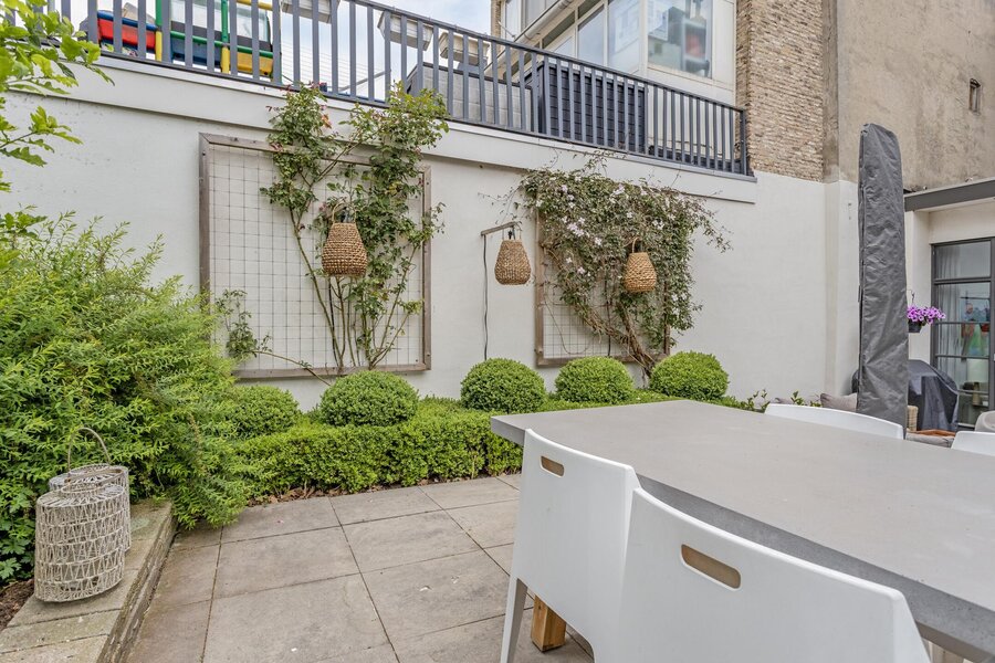 Deze sfeervolle woning beschikt over een zonnige stadstuin op het zuiden, een ideale plek om te ontspannen en te genieten van het buitenleven. Het ruime terras nodigt uit tot lange zomeravonden met vrienden, te midden van weelderig groen en kleurrijke borders. Of je nu in alle rust wilt ontspannen of gezellig wilt tafelen met gasten, deze tuin is jouw eigen stukje natuur in de stad.