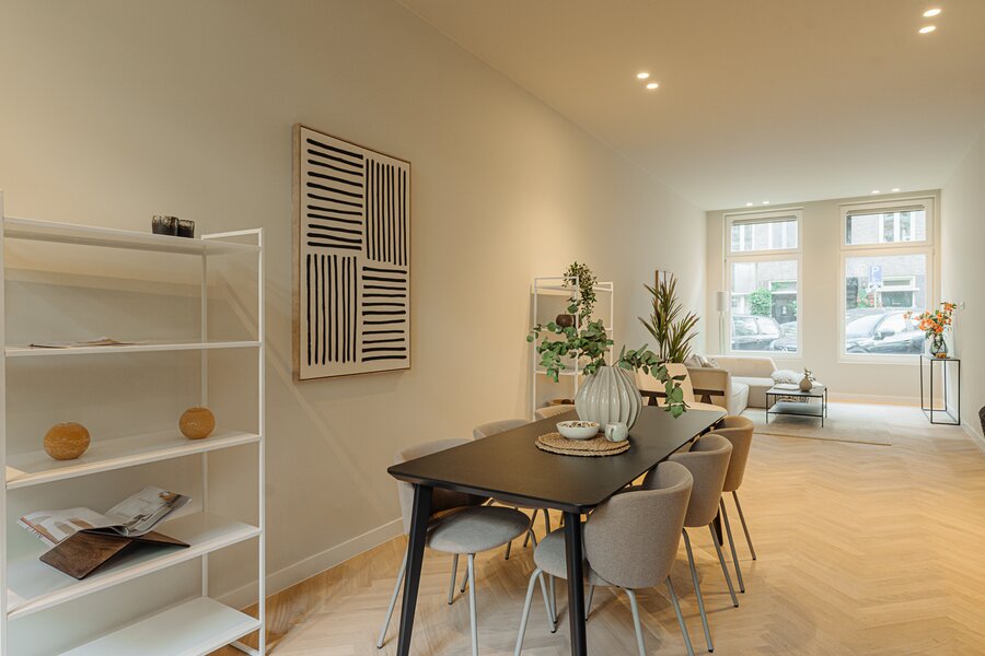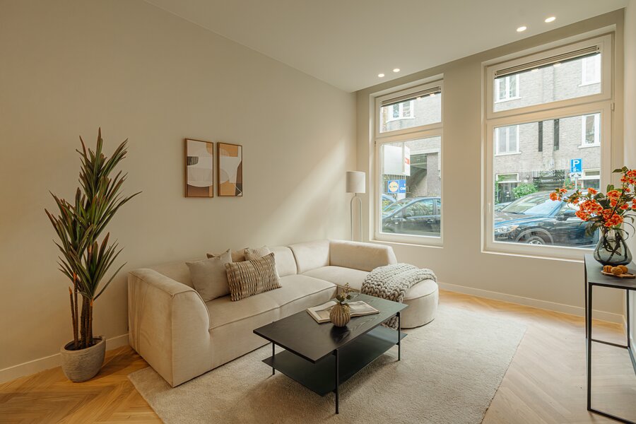 Hoogwaardig en luxueus verbouwde dubbele benedenwoning van ca. 116 m² (NEN-gemeten), gelegen op eigen grond, met drie slaapkamers en een fraaie open keuken. De woning ligt in een rustige straat op een centrale locatie in Oud-West. Het appartement is zojuist volledig gerenoveerd en kan snel worden opgeleverd.