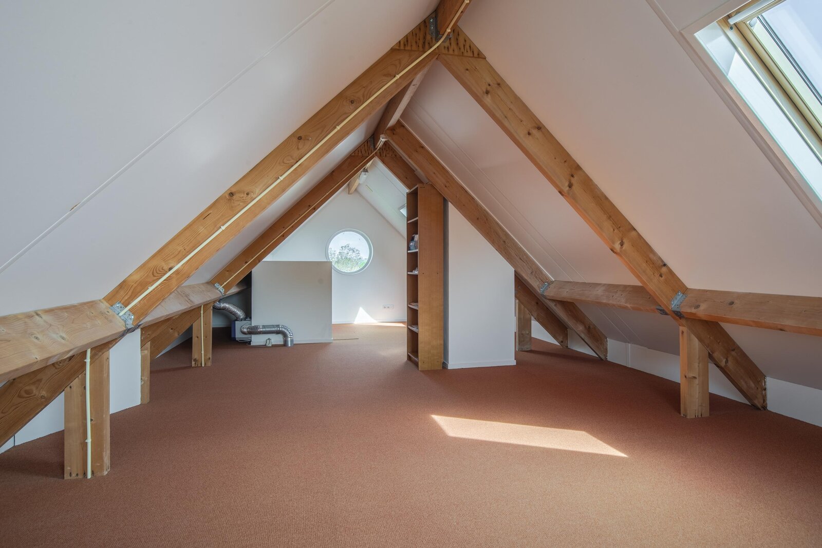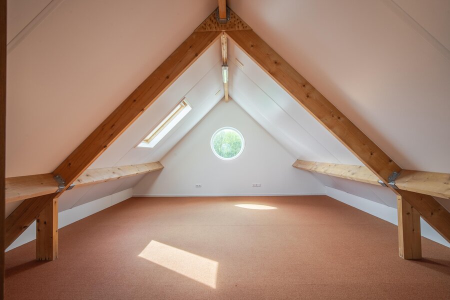 Ruime zolderetage met stahoogte, voorzien van twee Velux dakramen, ronde ramen aan beide zijden en een opstelplaats voor de mechanische ventilatie. Door de ruimte en hoogte is het mogelijk om deze verdieping in te richten als extra slaapkamer(s) of multifunctionele ruimte.