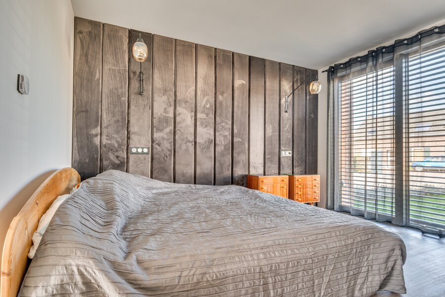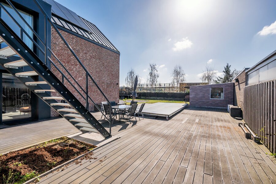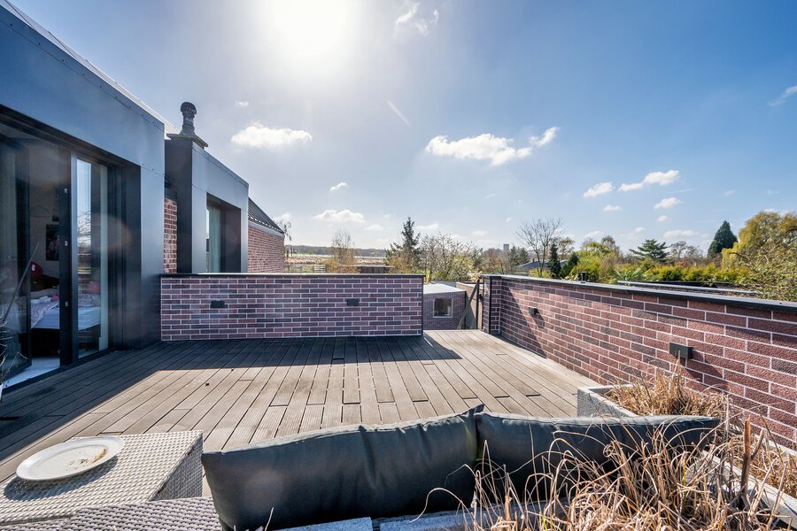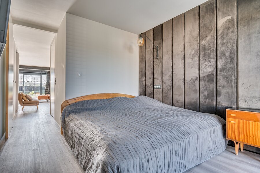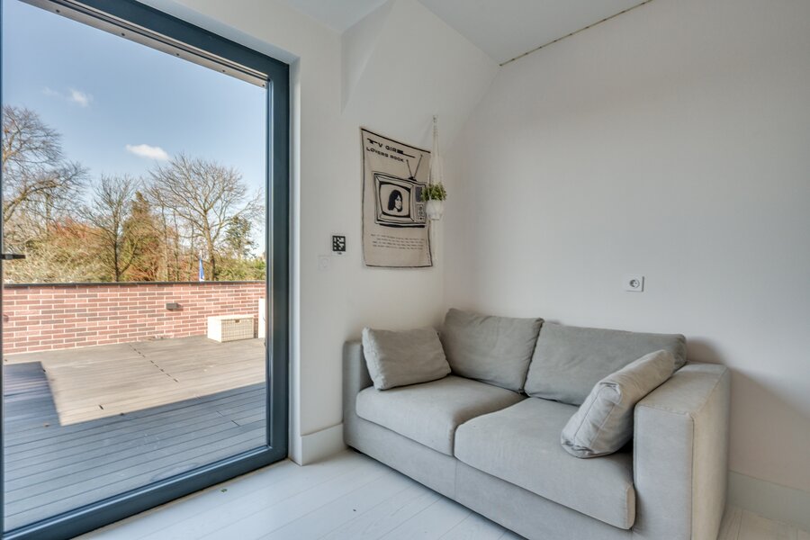 Middels een vaste trapopgang vanuit de woonkamer is de zeer ruime vide. De vide geeft prachtig uitzicht over de achtertuin en is momenteel verder ingericht als een 2e woonkamer. De overloop geeft toegang tot 2 ruime slaapkamers, inloopkast en de badkamer. De slaapkamers zijn beide ca. 15m² groot. De badkamer is voorzien van een ligbad, dubbele wastafel met meubel, zwevend toilet, mechanische ventilatie en een buitenraam. Vanuit beide slaapkamers is het dakterras te betreden welke tevens toegang geeft tot de tuin. De gehele 1e verdieping is voorzien van een eikenhouten plankenvloer.