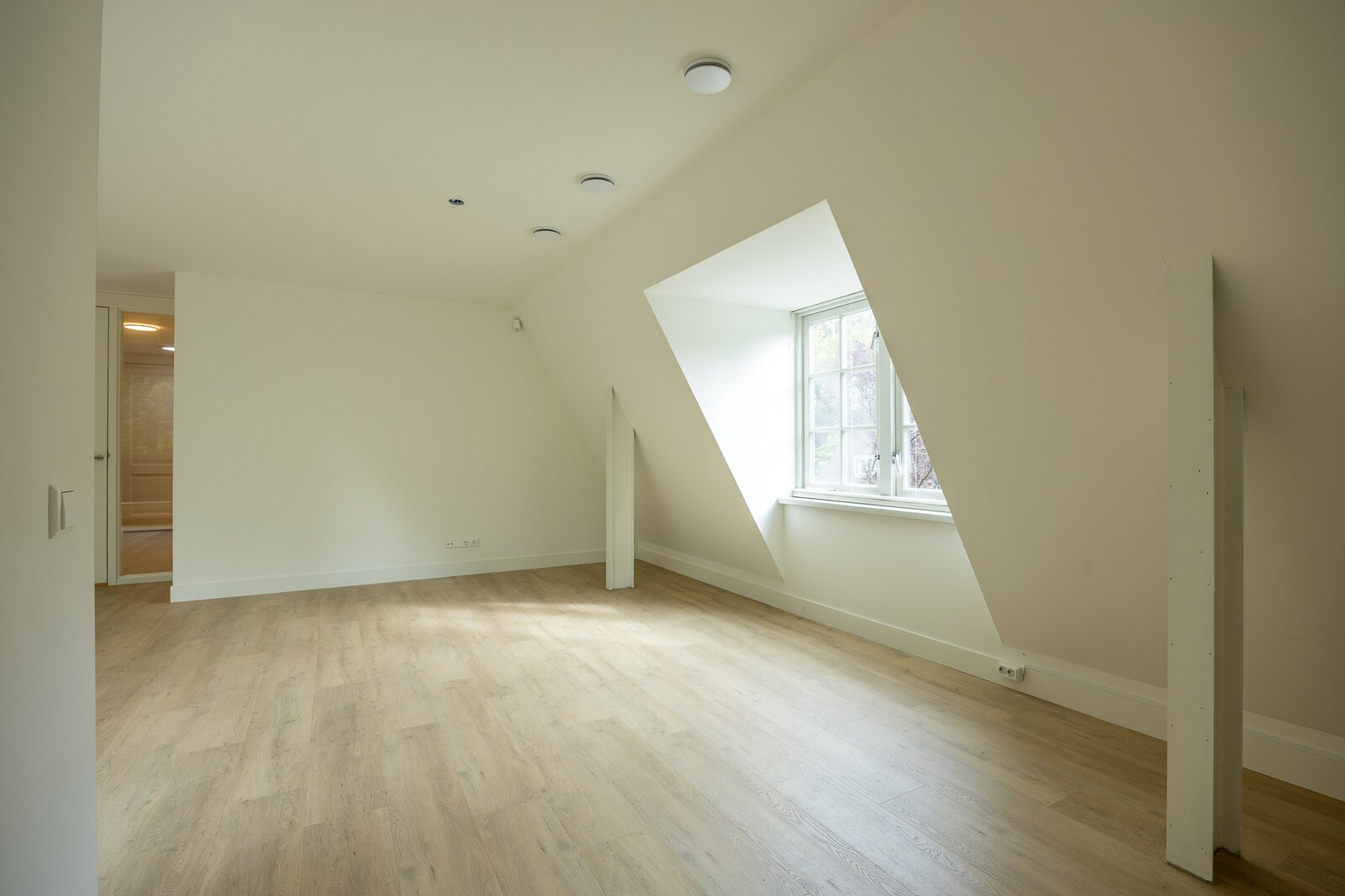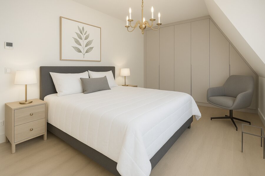 Aansluitend aan de living bevinden zich de twee mooie slaapkamers. De grote slaapkamer heeft een grote ingebouwde kastenwand tot aan het plafond. Beiden slaapkamers zijn ook voorzien van een dakkapel.