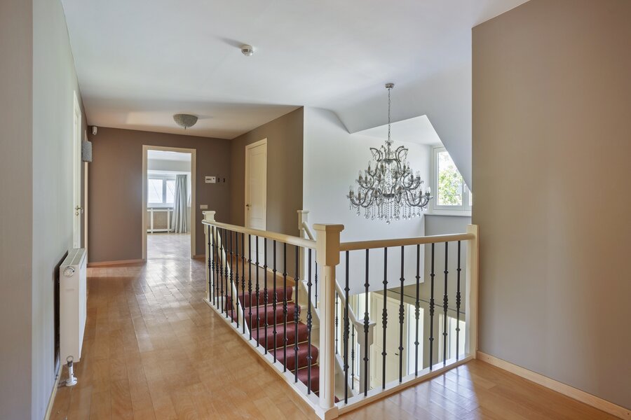 Als je via de trap de eerste verdieping bereikt, kom je aan op de overloop. Deze geeft toegang tot vijf volwaardige slaapkamers, een moderne badkamer en een apart toilet. De kamers zijn stuk voor stuk ruim, licht en keurig afgewerkt.
