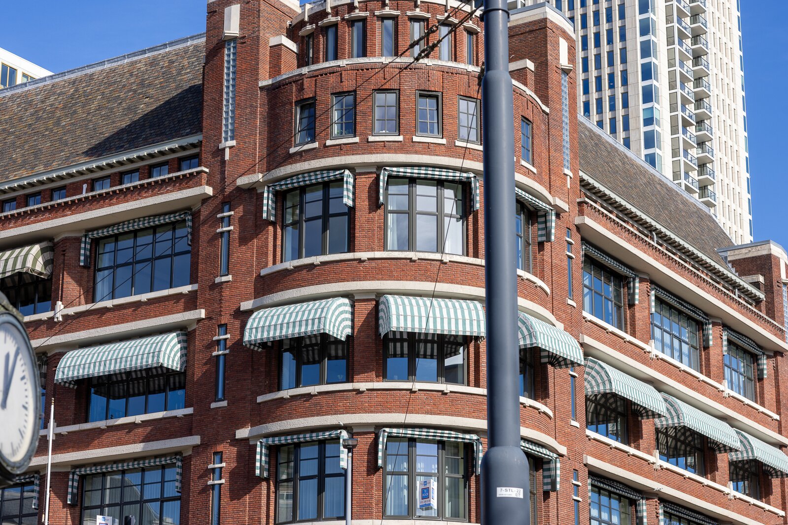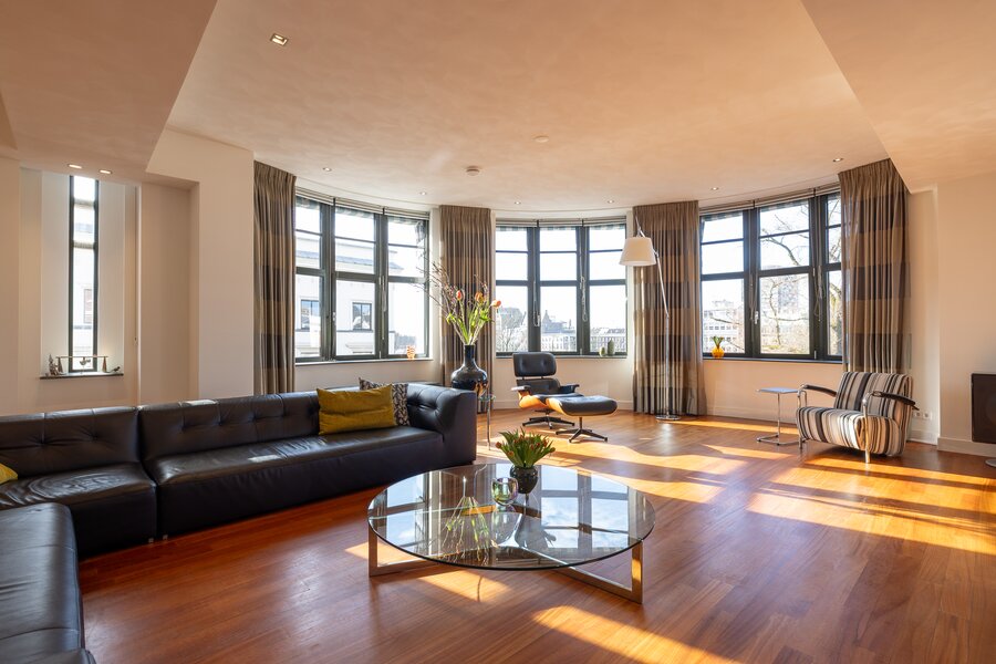 In the iconic Atlantic Huis, a national monument and one of Rotterdam’s most distinctive residential buildings, you will find this exceptionally spacious corner apartment of no less than 254 m², located on the third floor. From the impressive windows and the characteristic curved façade, there are beautiful views over the Veerhaven, the stately buildings of the Scheepvaartkwartier, the park and the Euromast.