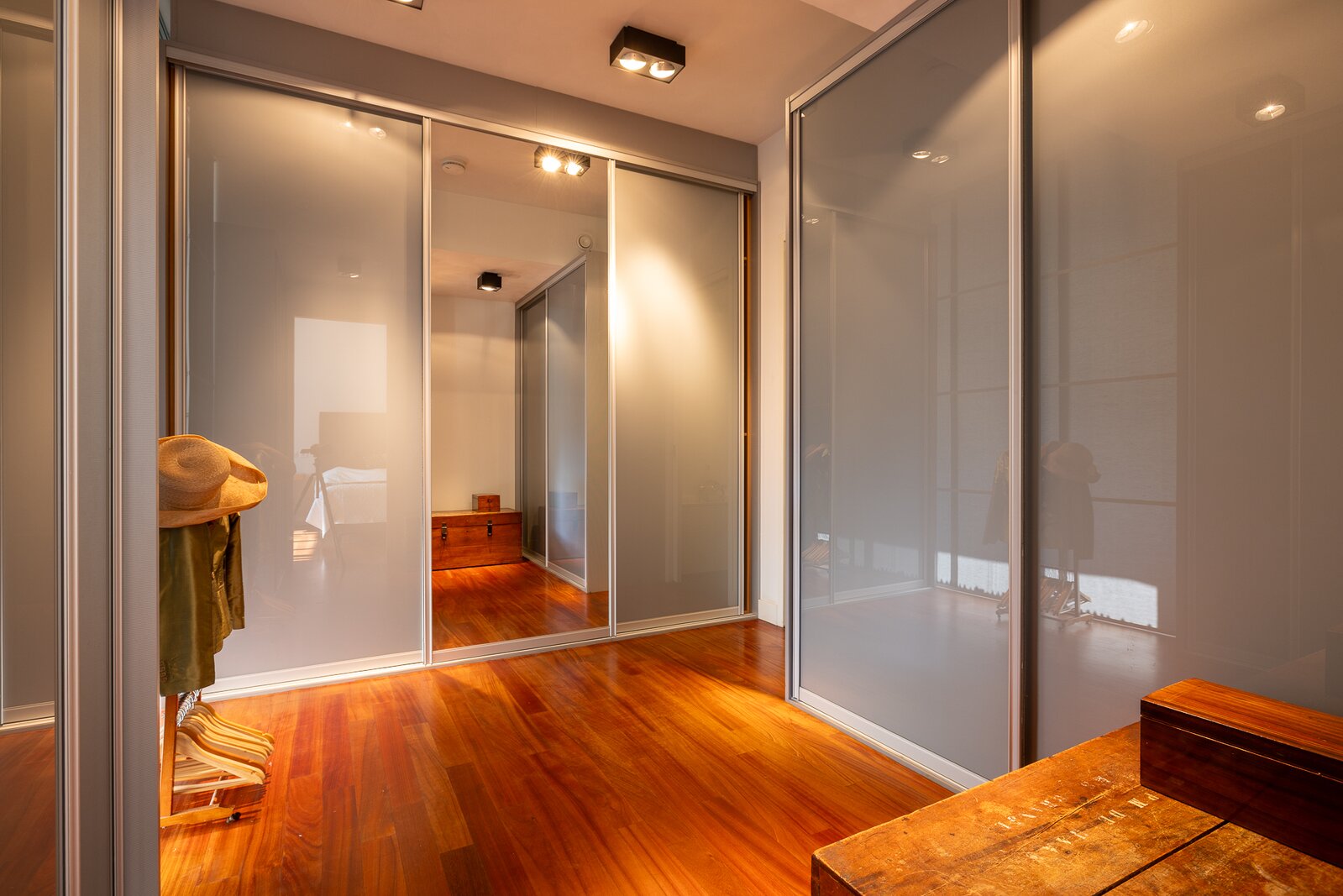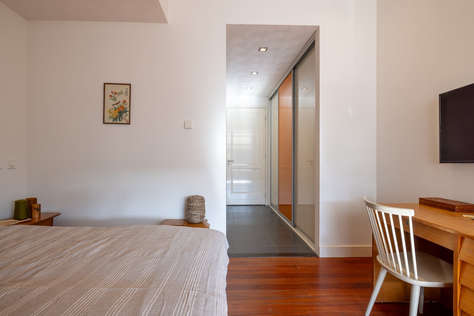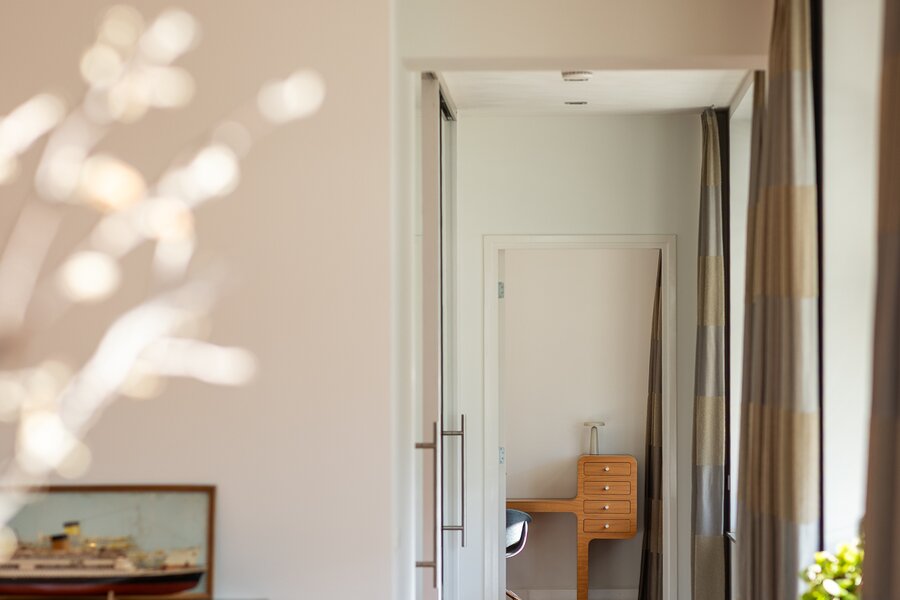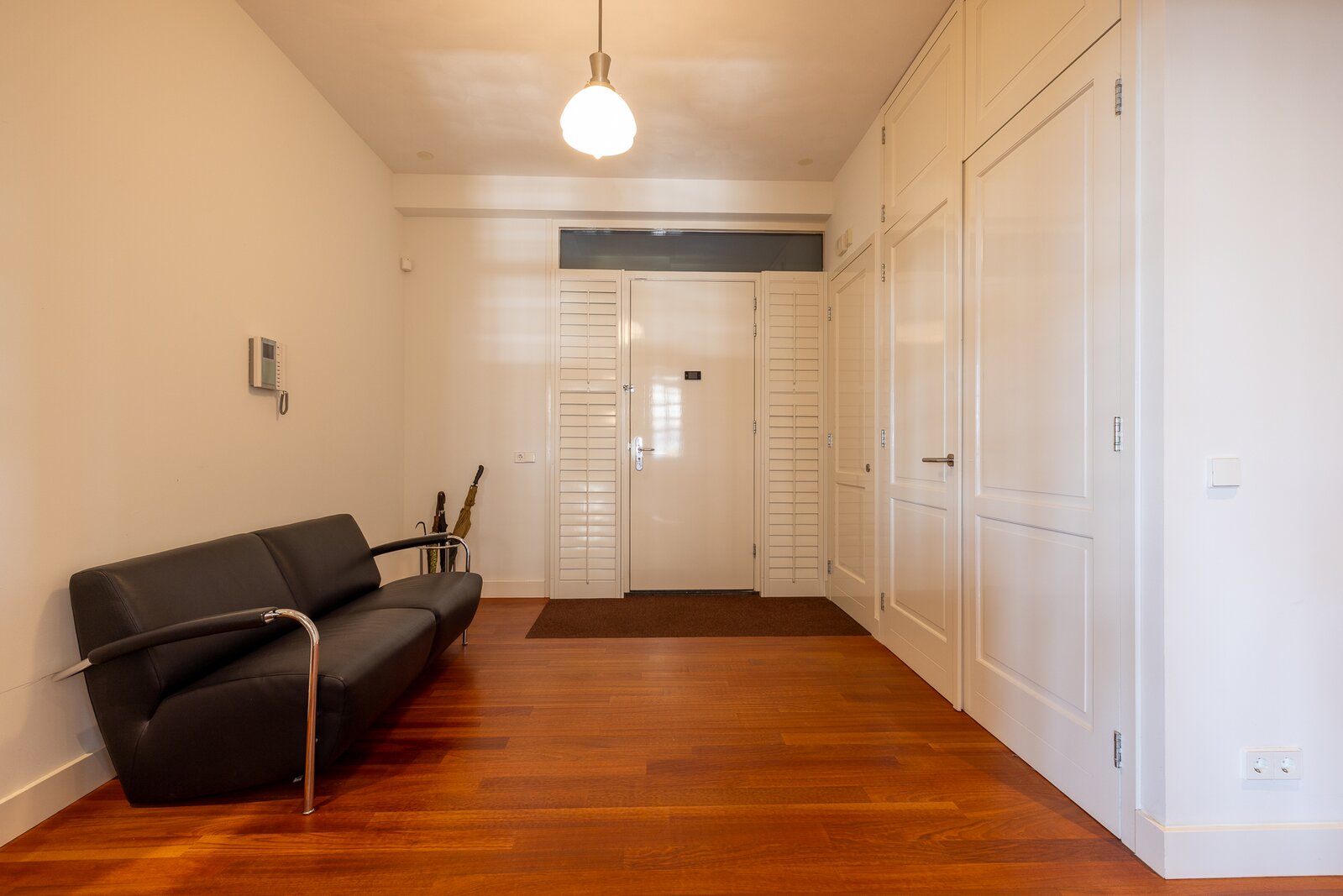 The apartment was created by merging two residences and still retains two house numbers and two separate entrances. This offers remarkable flexibility of use and makes the property particularly suitable for a live-work combination, a home office, or a layout with a self-contained guest accommodation.