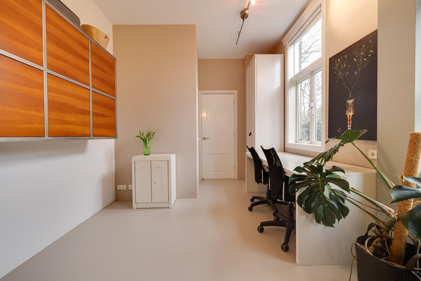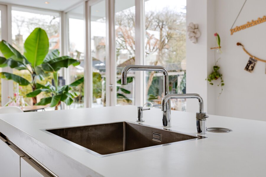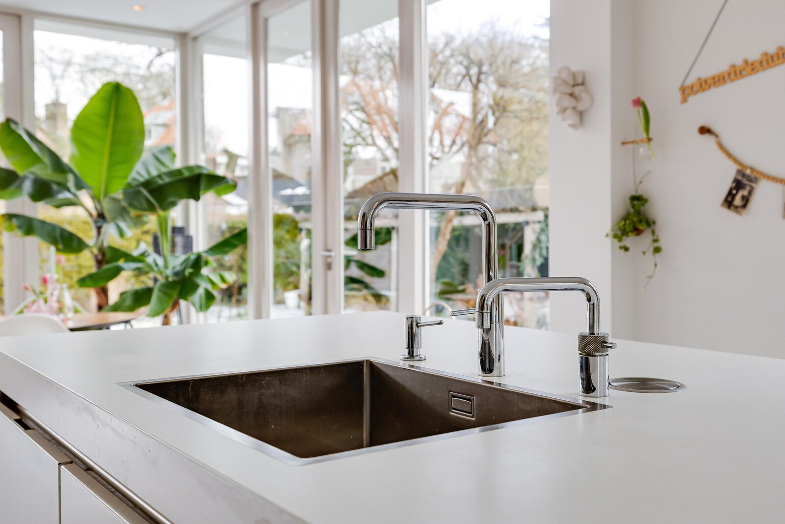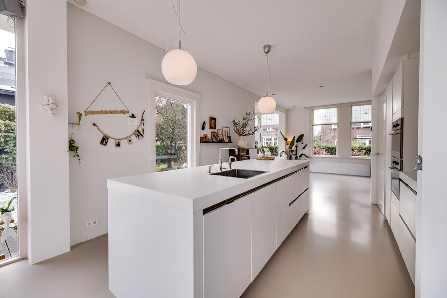 De sfeervolle woonkamer aan de voorzijde, met een houtkachel en prachtige lichtinval door de originele glas-in-lood ramen, gaat naadloos over in de serre met openslaande deuren naar de tuin. De absolute eyecatcher is echter de royale uitbouw aan de achterzijde uit 2011. Hier is de spectaculaire woonkeuken gerealiseerd, het hart van het huis. Deze luxe keuken is voorzien van alle denkbare A-merk inbouwapparatuur, met een stoomoven, combi-oven, inductiekookplaat, Quooker, vaatwasser en een grote koelkast met 0-graden zone. De uitbouw heeft aan twee zijden openslaande deuren naar de tuin en een ingebouwde gashaard. Vanuit de keuken bereikt u de praktische bijkeuken met volop bergruimte en plek voor vriezer, wasmachine en droger. Daarnaast is er een royale kelder. De gehele begane grond is voorzien van comfortabele vloerverwarming.