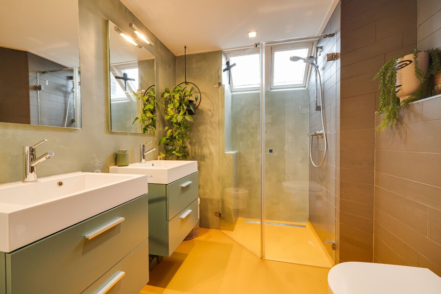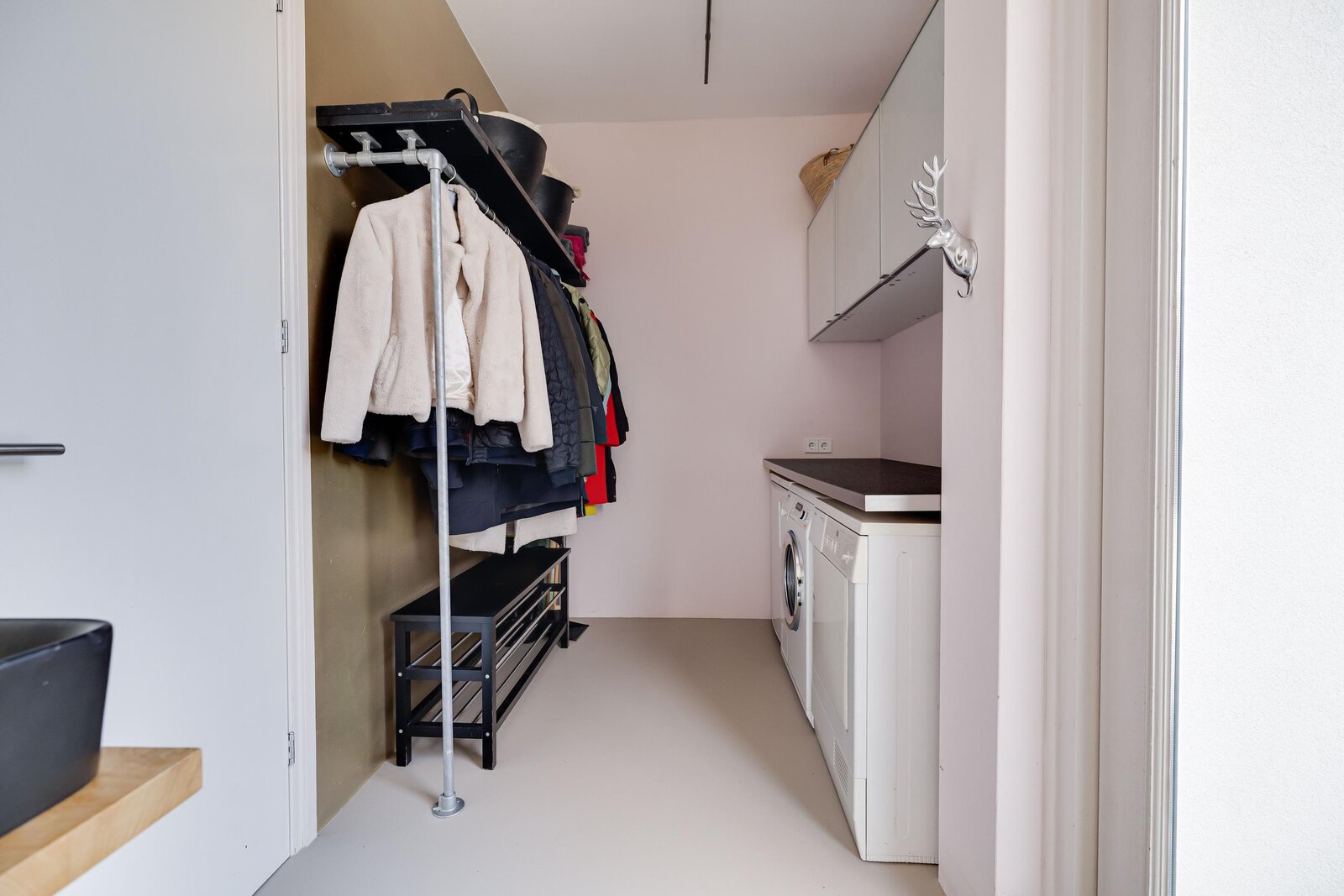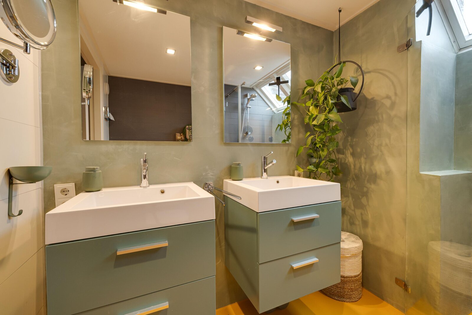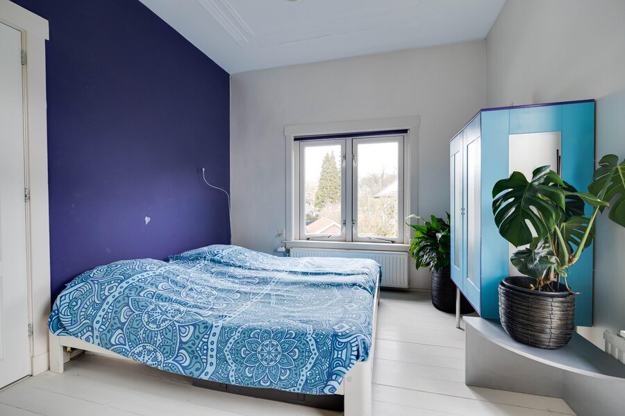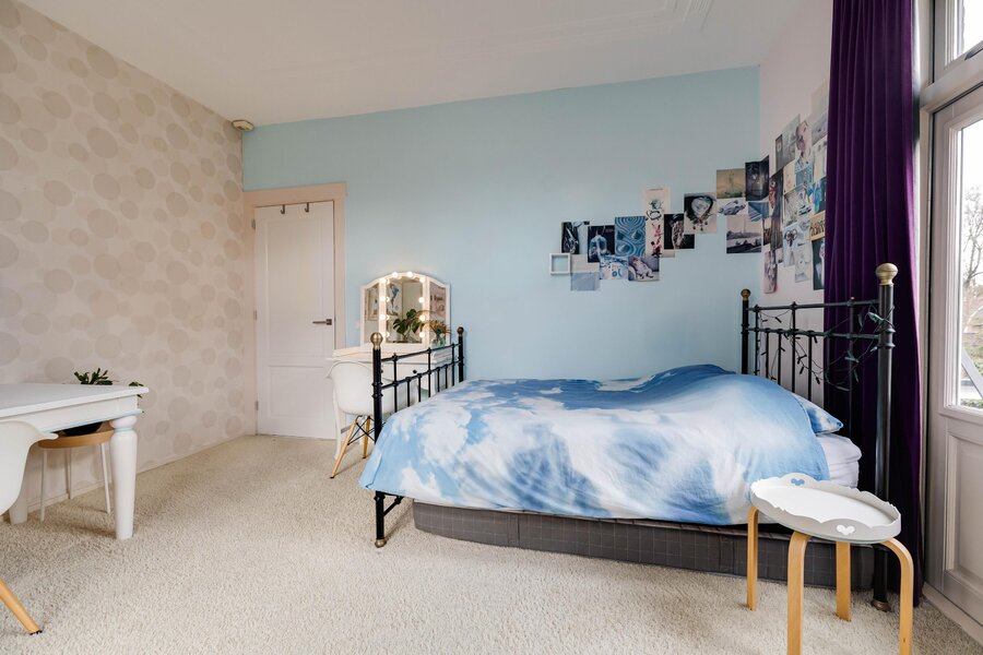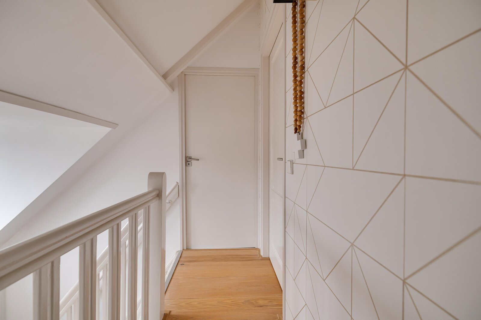Tweede verdieping (Zolder). Vanaf de overloop komt u in de riante hoofdslaapkamer, afgewerkt met een schitterende eikenhouten vloer en een royale inloopkast. De complete badkamer op deze verdieping is voorzien van vloerverwarming, een dubbele wastafel, een wandcloset en een ruime inloopdouche. Dit is een verdieping die rust, ruimte en luxe ademt. De overloop biedt ook toegang tot een berging en tot de technische ruimte waar de CV-opstelling en de warmtepomp zijn geïnstalleerd.