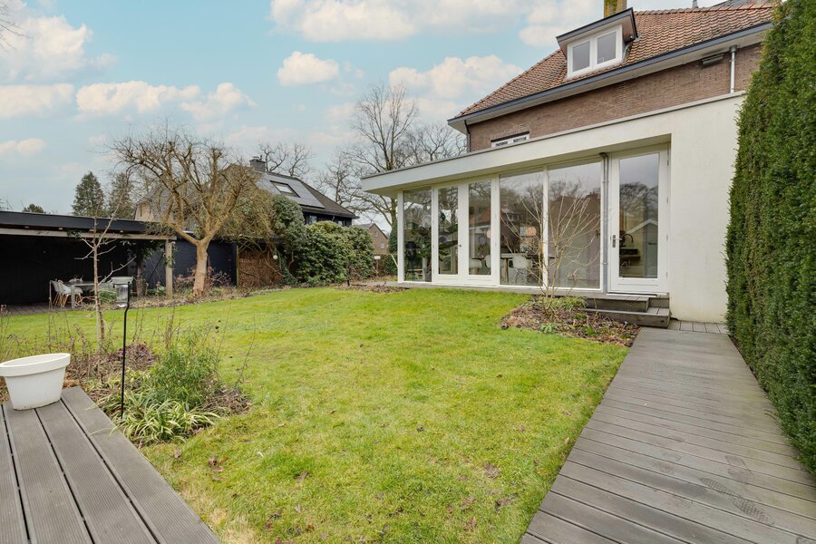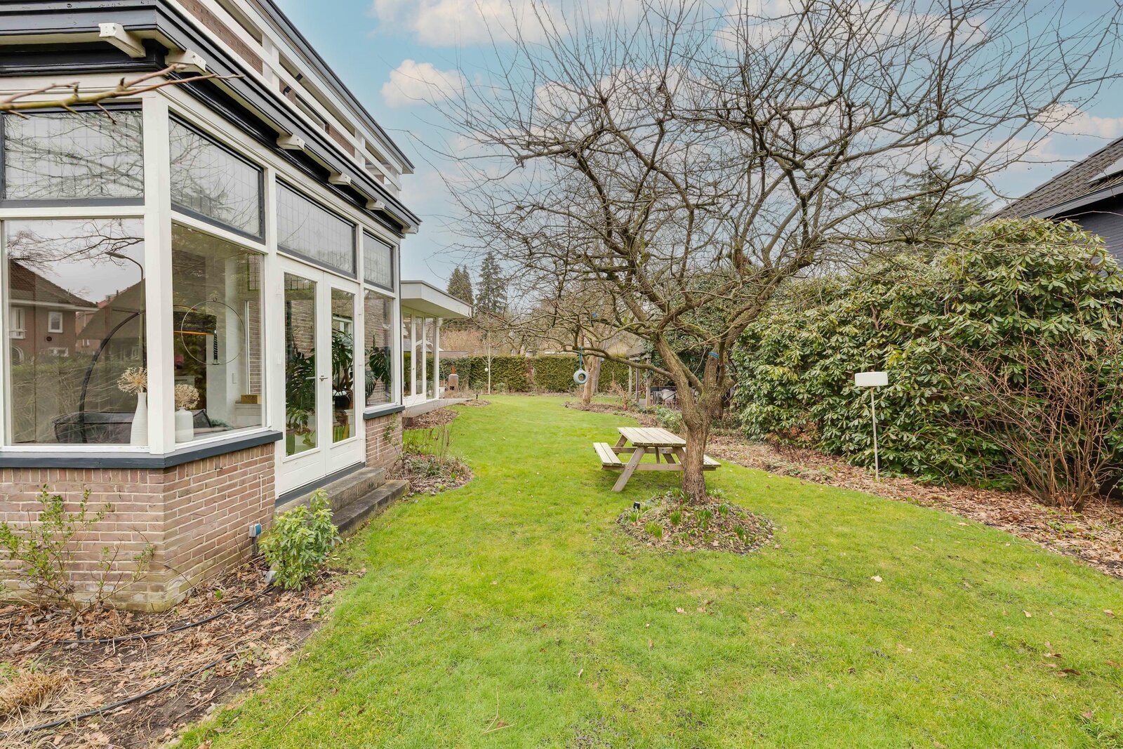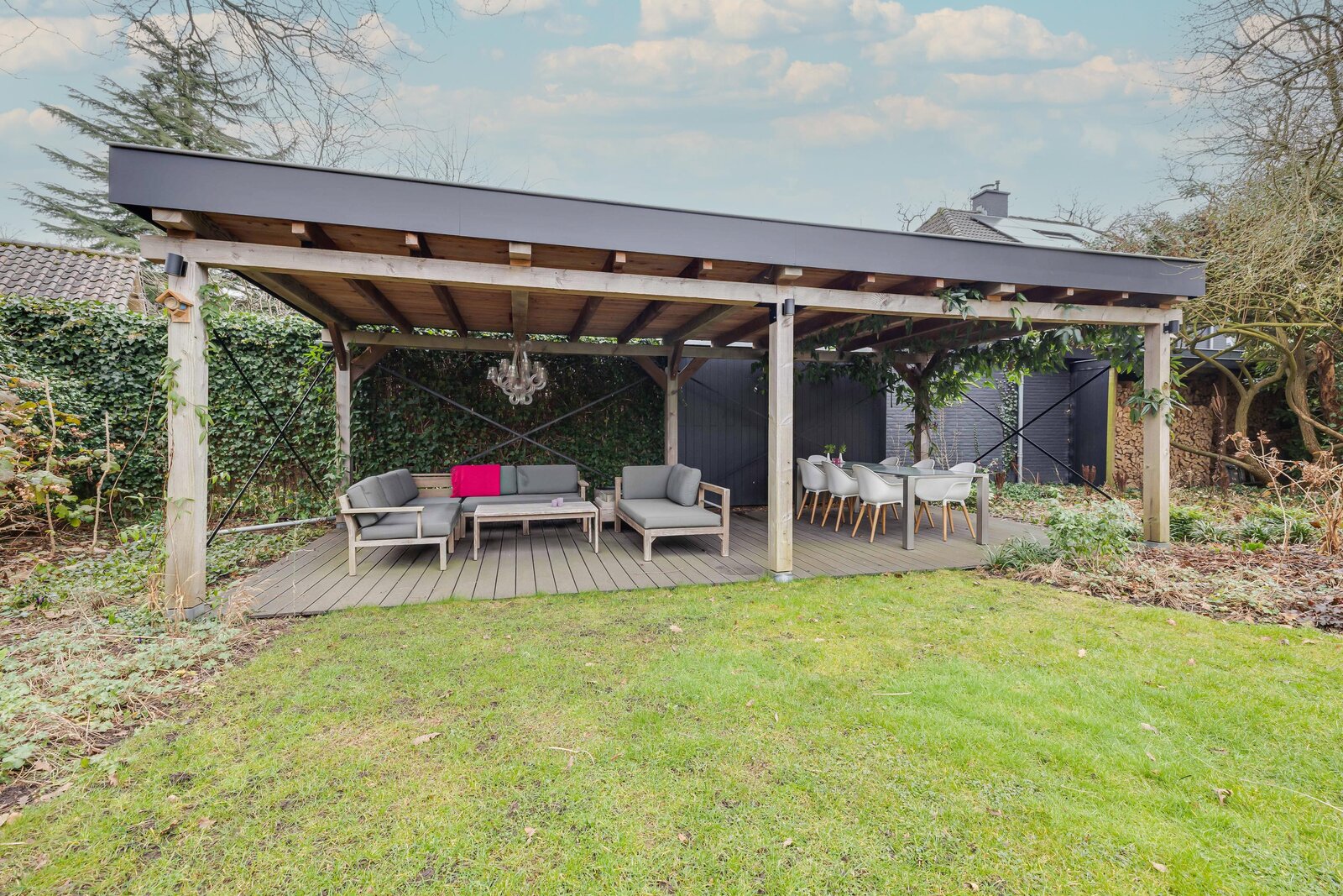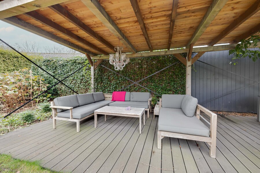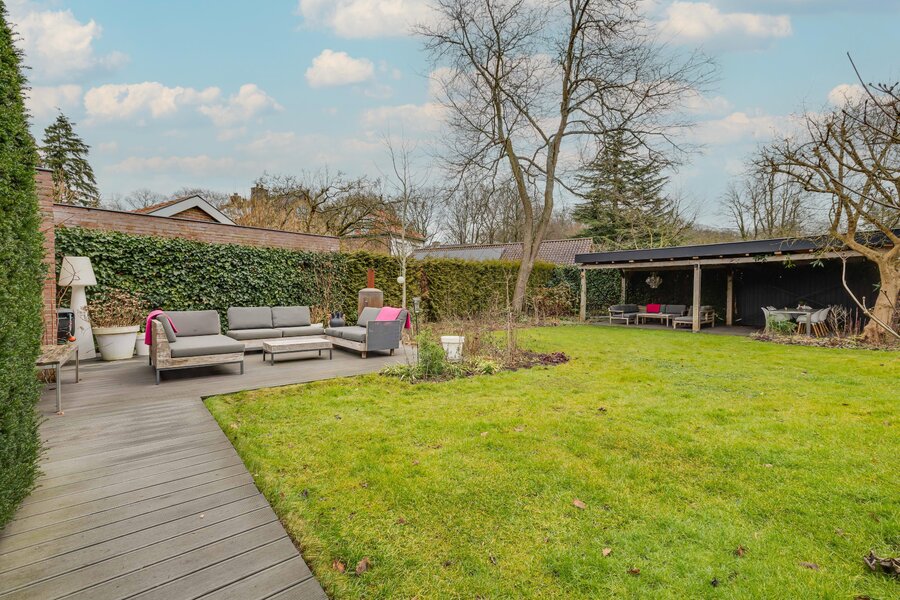 Tuin en exterieur De woning wordt omgeven door een zeer royale, fraai aangelegde en vrije tuin die veel rust en privacy biedt. De tuin is uitgerust met een professionele sproei-installatie en voor zien van verlichting. De prachtig gelegen veranda is de perfecte plek om tot in de late uurtjes te genieten. Er is tevens een ruime garage/berging aanwezig.