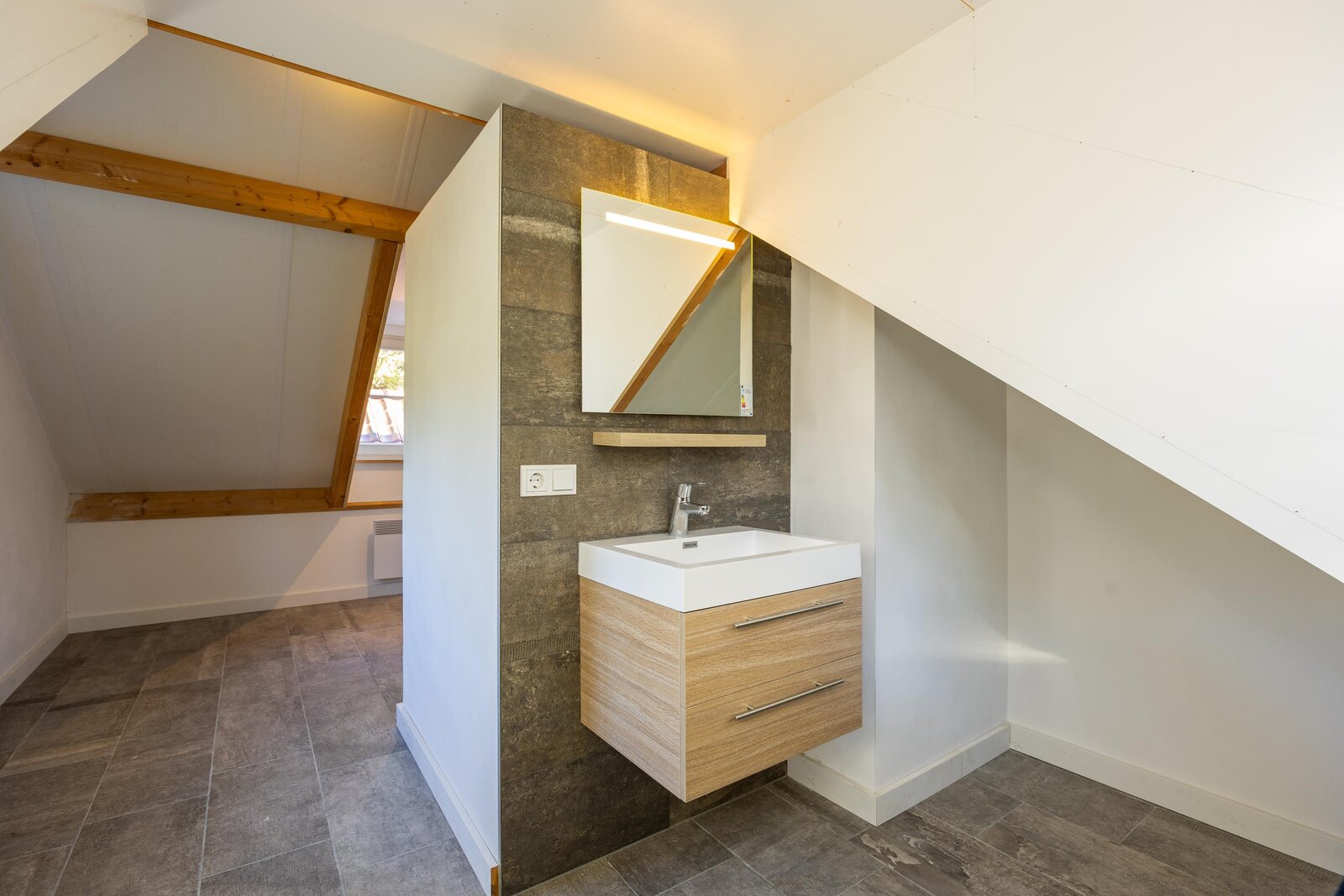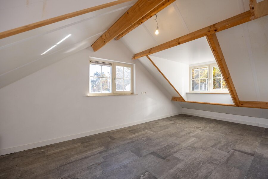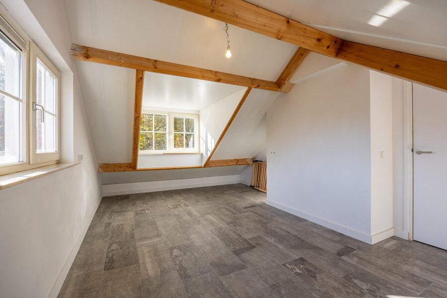 Op de tweede verdieping bevindt zich een tweede badkamer met douche, wastafelmeubel en dakkapel, evenals een derde slaapkamer. Ook deze slaapkamer beschikt over een dakkapel, wat zorgt voor extra lichtinval en een ruimtelijk gevoel.