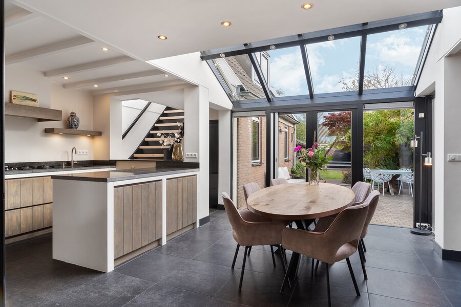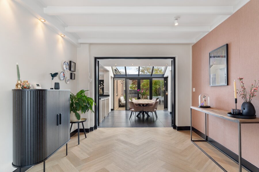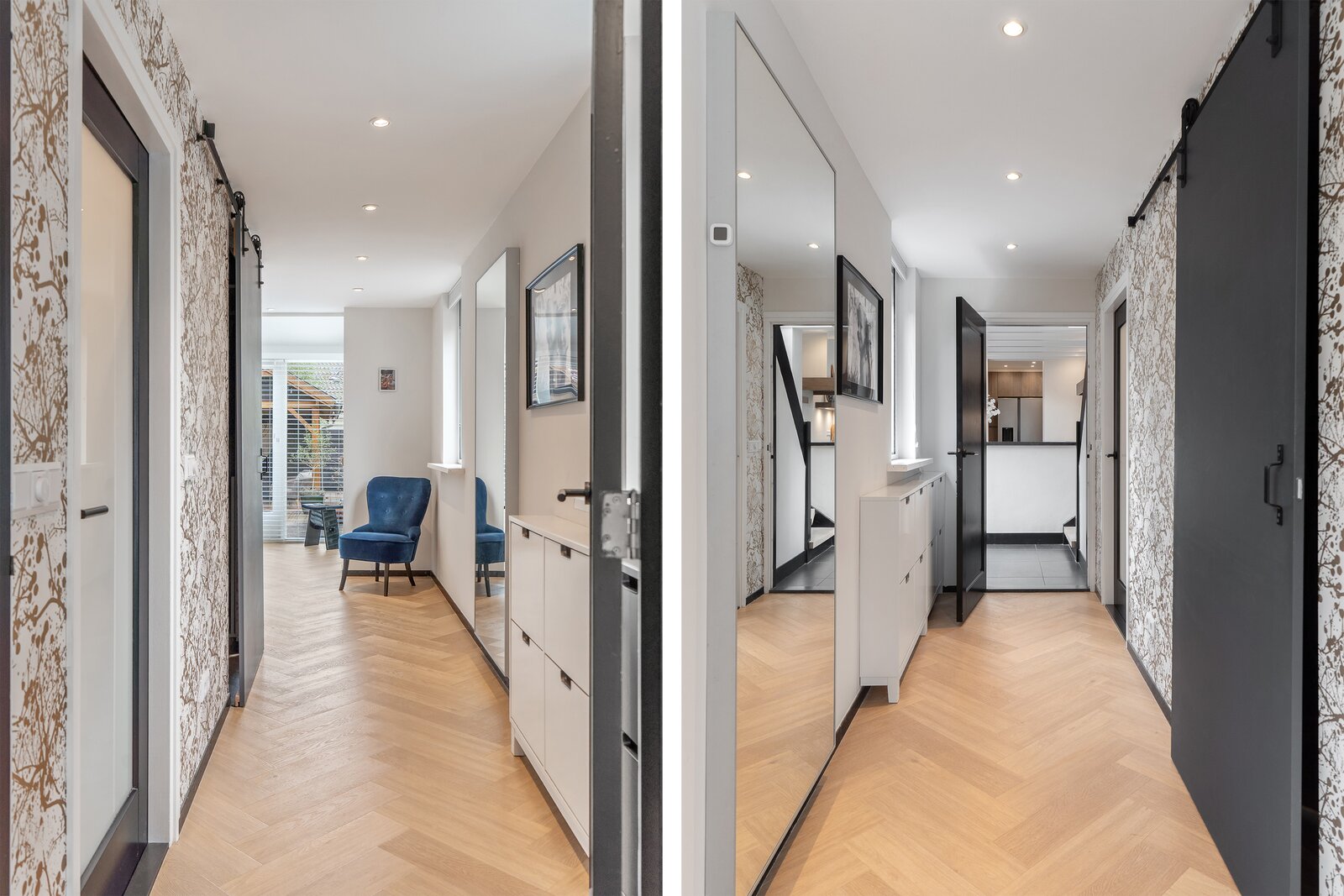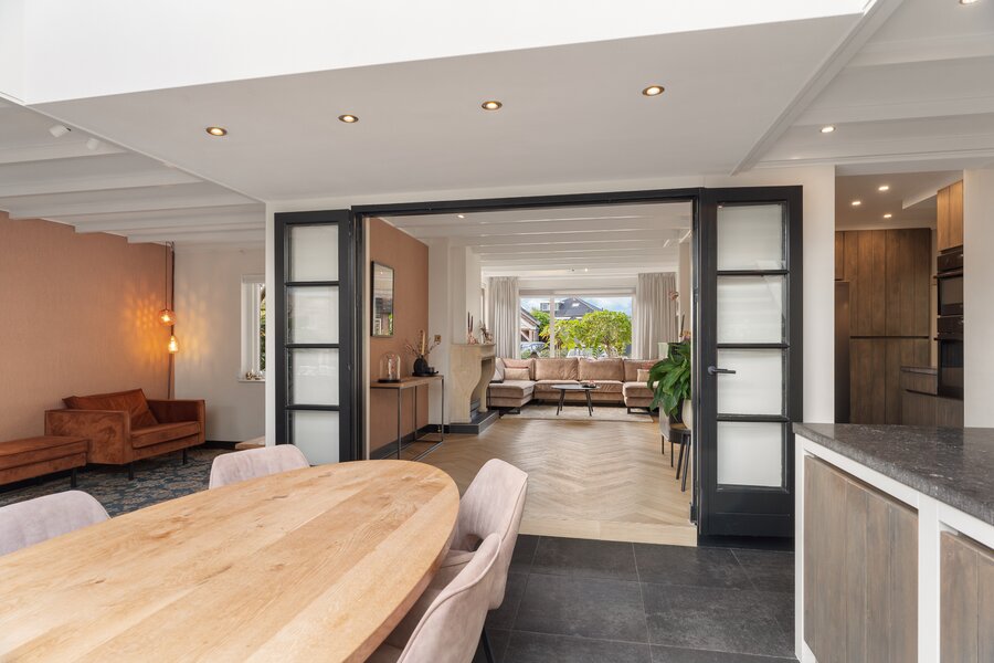 Achter deze charmante, bescheiden voorgevel gaat een verrassend luxueus familiehuis schuil van circa 204 m², verdeeld over twee karaktervolle geschakelde woongedeelten ieder met eigen sanitaire voorzieningen. De huidige eigenaren hebben het huis de afgelopen jaren flink onder handen genomen. Met veel aandacht voor detail is de woning reeds gemoderniseerd op alle vlakken: Een nieuwe moderne keuken, twee nieuwe badkamers, nieuwe HR++ beglazing, een warmtepomp en 23 zonnepanelen (2024), airconditioning in alle slaapkamers, vloerverwarming op de begane grond, en een overkapping + luxueuze tuinverlichting in de achtertuin. Een rondgang door het huis laat duidelijk zien hoeveel liefde, aandacht en tijd is besteed aan het transformeren van deze vrijstaande villa tot een echt familiehuis. Wij nemen u graag mee voor een ronde door deze unieke woning.