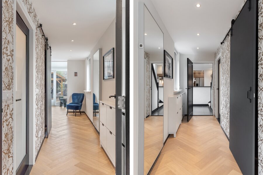 Naast comfortabel wonen biedt deze woning ook ruimte voor de ondernemer aan huis. Via een eigen entree aan de voorzijde is de praktijkruimte bereikbaar, momenteel dienst doende als kapsalon, en biedt daarmee de perfecte basis voor een professionele werkruimte of creatieve studio aan huis. De woning beschikt daarbij over twee opritten waardoor eventuele klanten of relaties altijd kunnen parkeren tijdens een bezoek aan huis of aan de onderneming.
