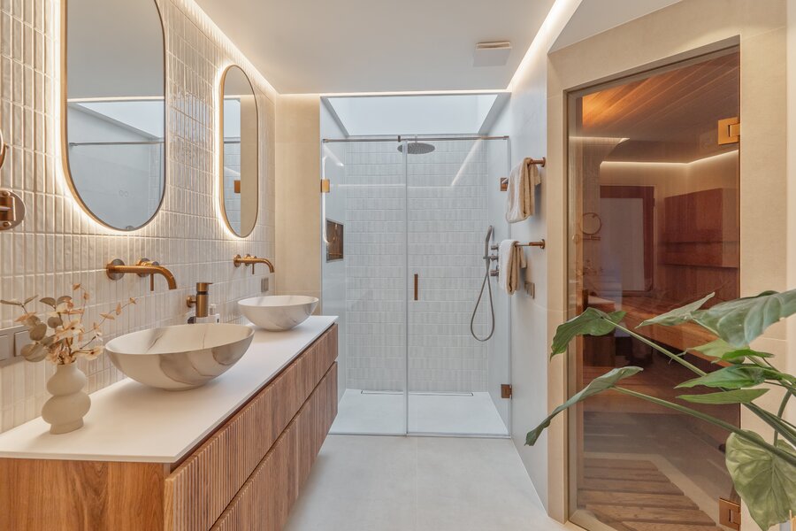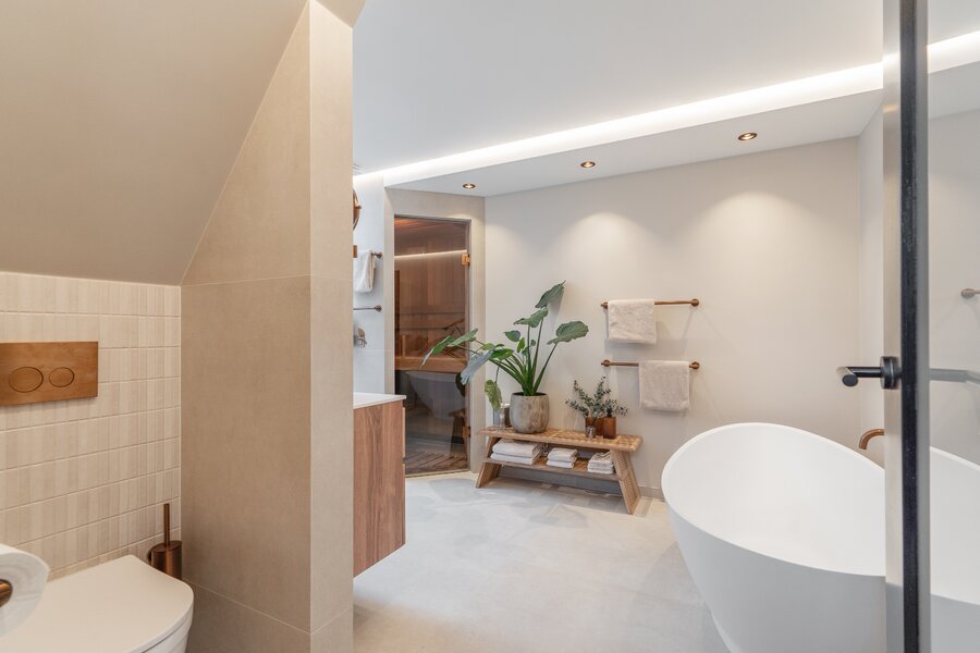• Gloednieuwe badkamer (2025) in luxe hotelsfeer met eigen sauna;