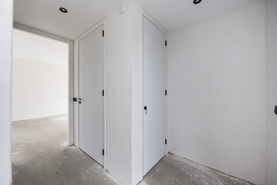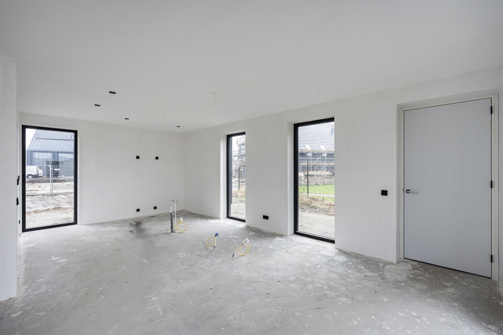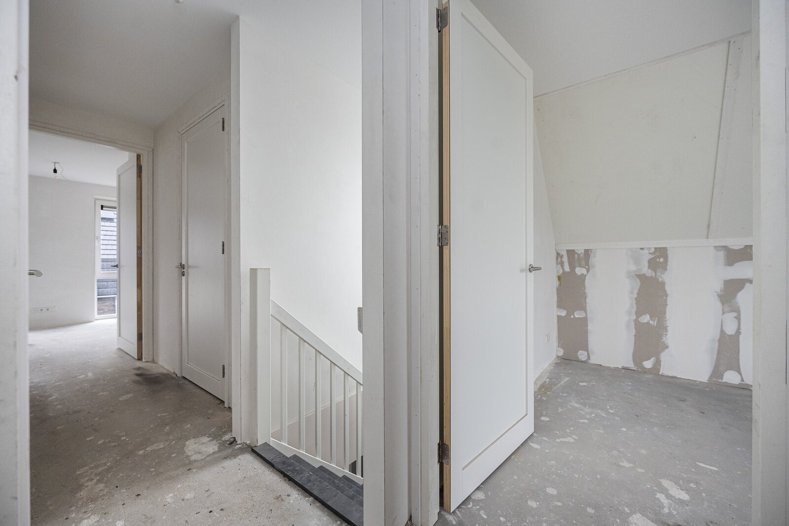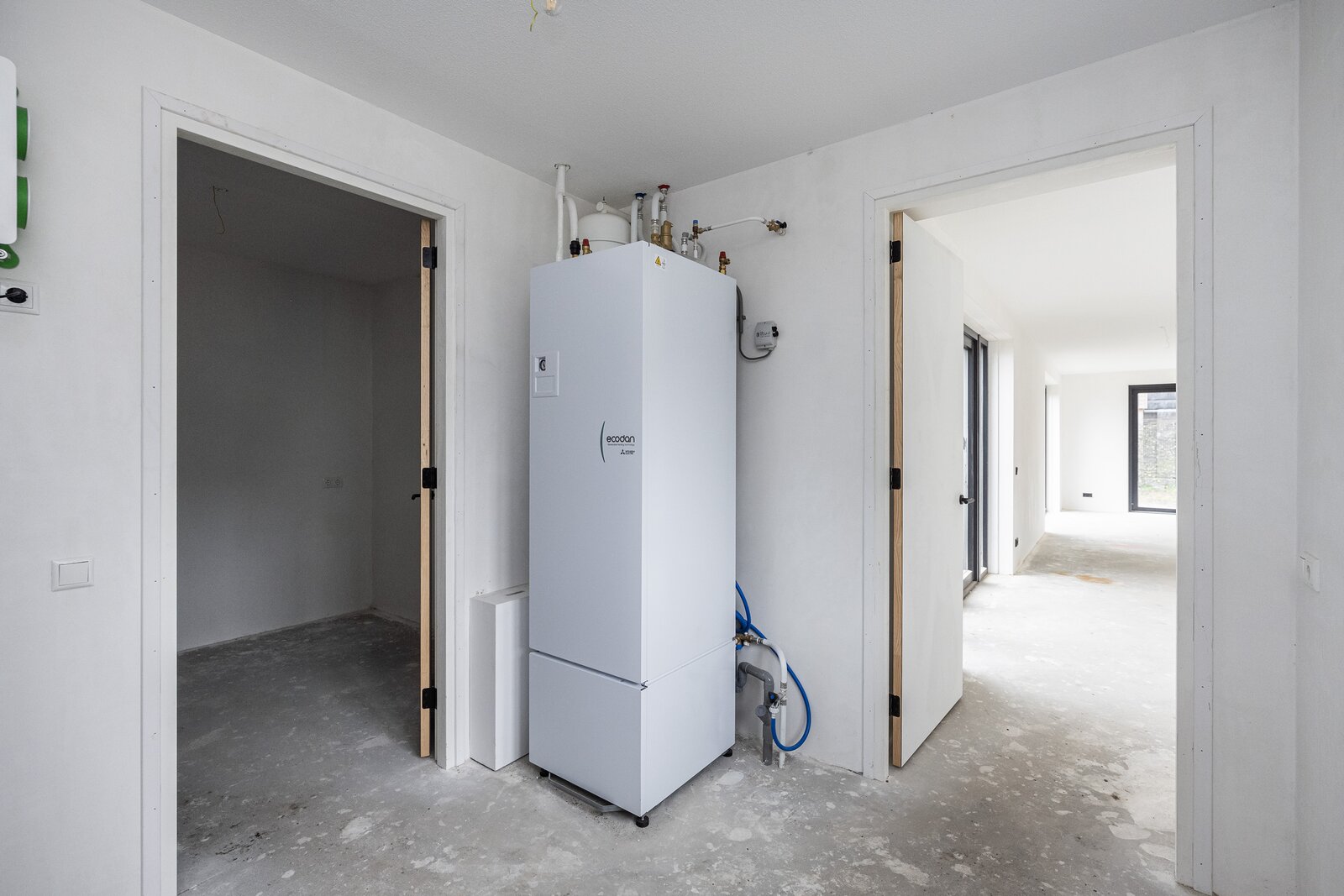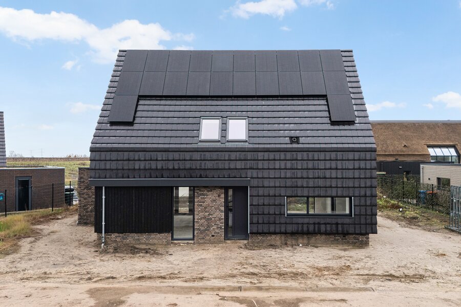 Entree met meterkast, mooie hal met trapopgang en een modern toilet met fonteintje. Je komt binnen in de heerlijk ruime leefruimte, een grote lichte doorzonkamer met veel ramen en een royale open keuken. Keuzes voor wat betreft de keuken kunnen nog (deels) gemaakt worden. Het installatiewerk is gedaan, waardoor er nu ruimte is voor een kook- en spoeleiland en hoge kasten met apparatuur (overleg met keukenleverancier mogelijk). Er zijn vanuit de keuken openslaande deuren naar de tuin en aan de zijkant vanuit de woonkamer een schuifpui naar buiten. Vanuit de keuken loop je zo door naar de praktische technische ruimte met o.a. de aansluitingen voor de wasapparatuur ofwel bijkeuken en daarachter een berging. Begin januari worden er op de begane grond prachtige zwarte binnendeuren geplaatst.