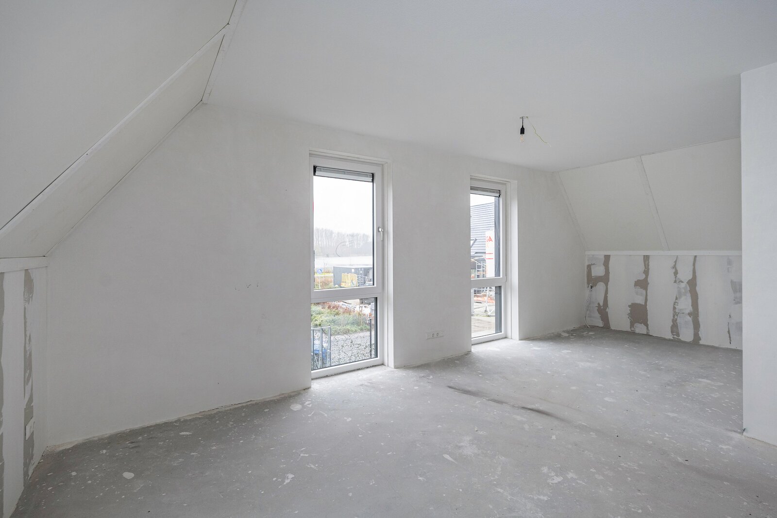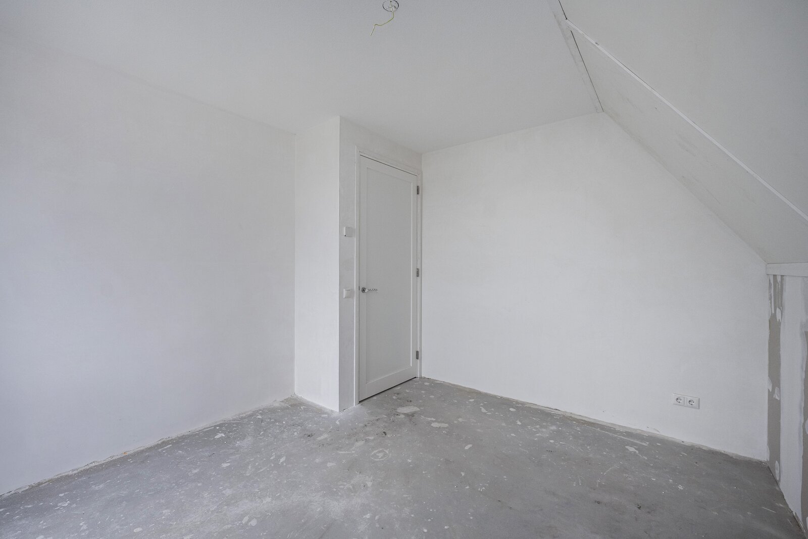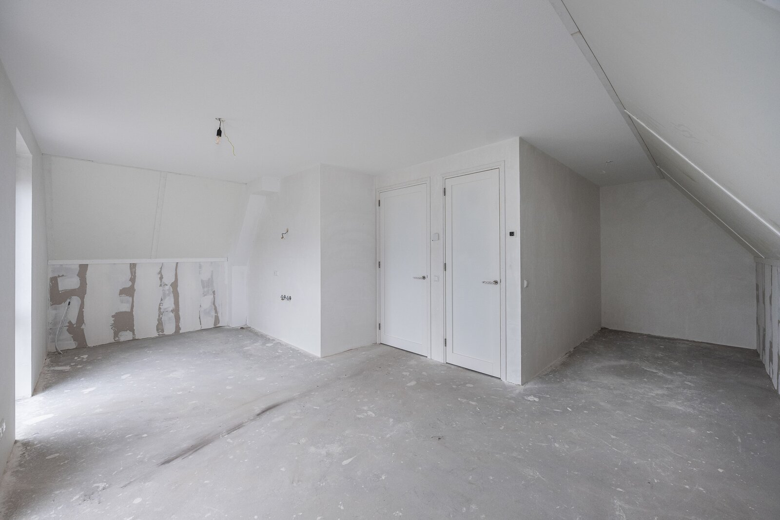 Via een vaste trap kom je op de overloop op de verdieping. Hier vind je toegang tot de drie mooie grote slaapkamers. De grootste slaapkamer vind je over de volle breedte van de woning en is voorzien van een ruime inloopkast en een extra bergruimte onder de trap naar de tweede verdieping. De badkamer is luxe uitgevoerd en reeds geïnstalleerd. Voorzien van een inloopdouche, een tweede toilet, een dubbel wastafelmeubel met waskommen en een bijpassende spiegel. Een raam zorgt voor frisse lucht en daglicht.