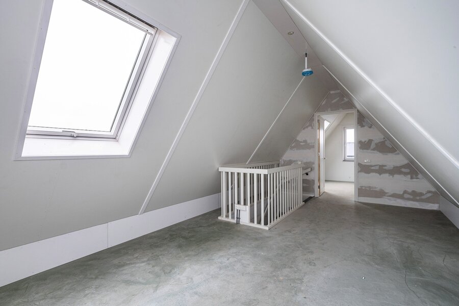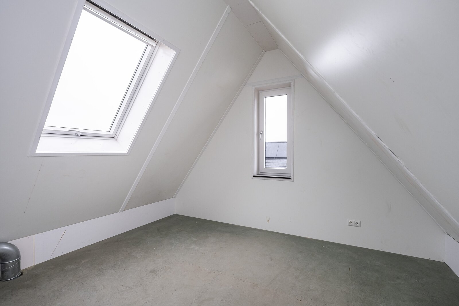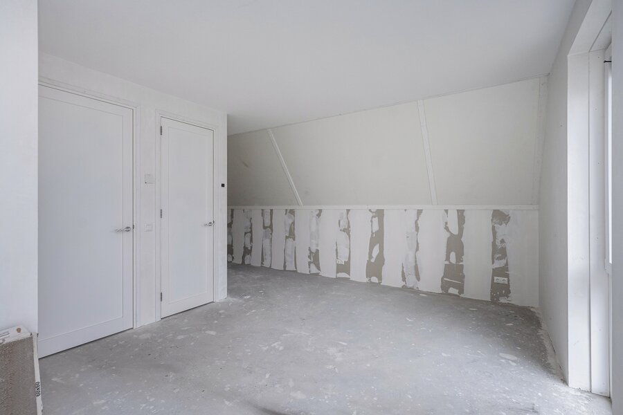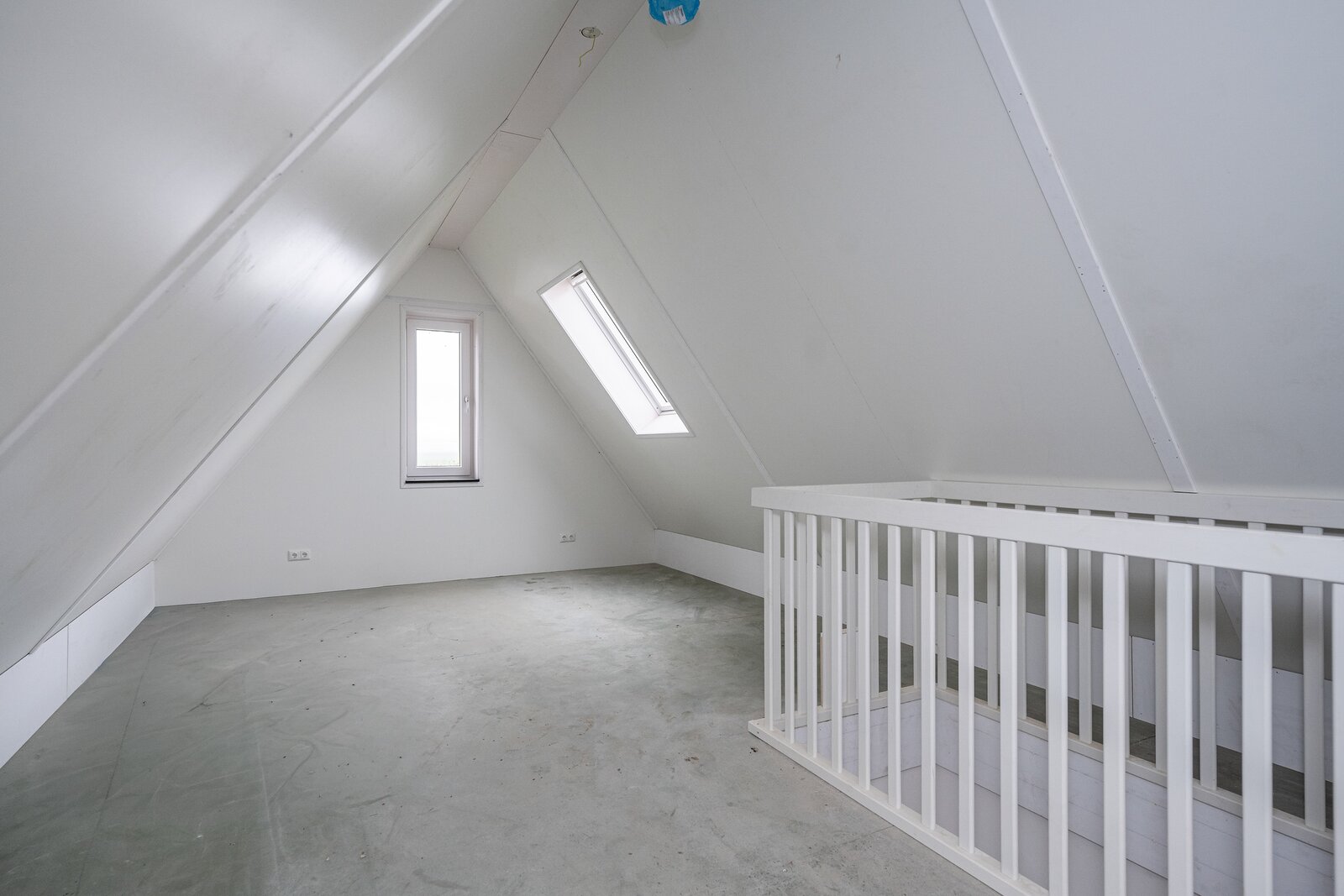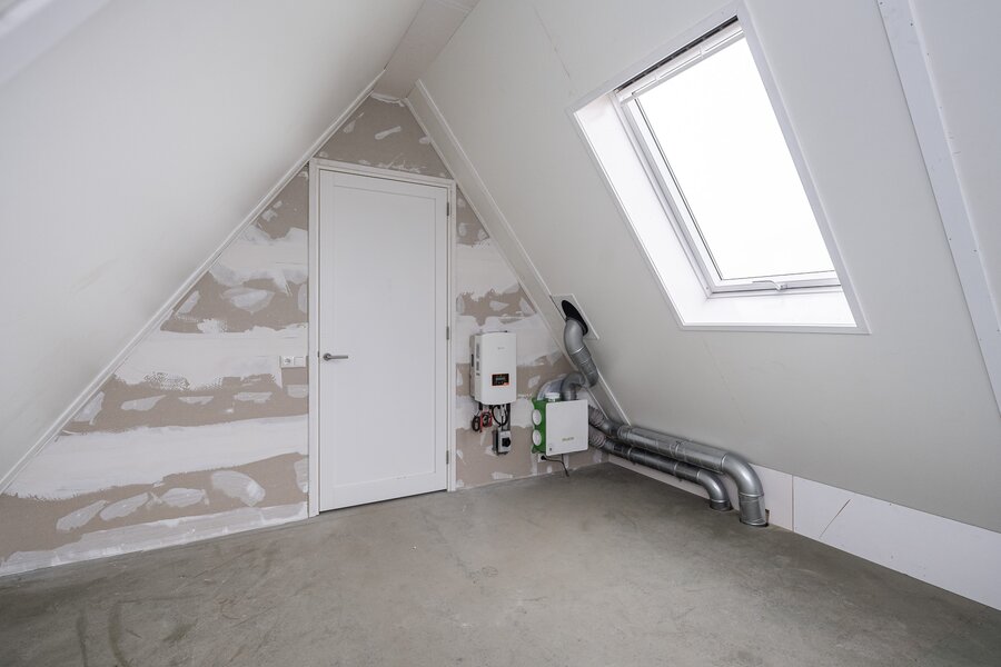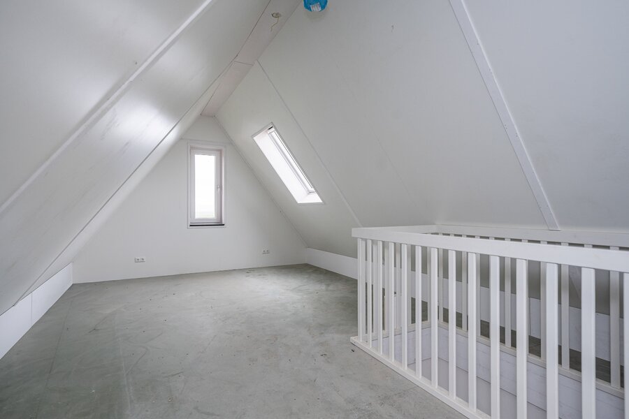Vaste trap naar de royale bovenste verdieping. Je komt hier op de grote zolderruimte met een raam en een extra dakraam, waardoor dit als vierde slaapkamer gebruikt kan worden. Bovendien is er nog een aparte ruimte, nu benoemd als berging, maar hier kan ook een vijfde slaapkamer gecreëerd worden.