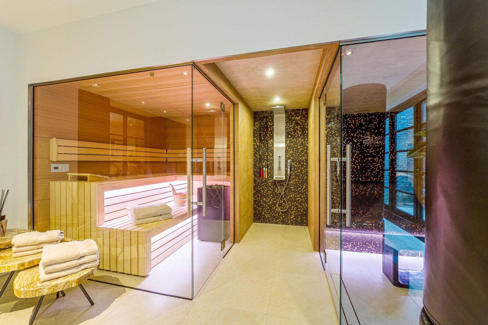 • Sauna en stoomcabine met inloopdouche
