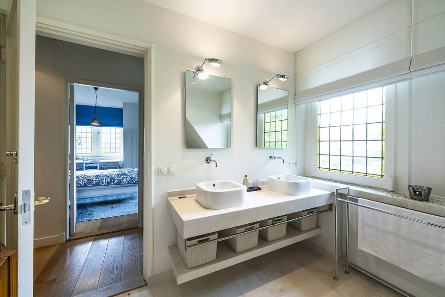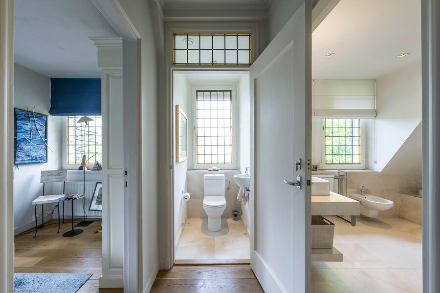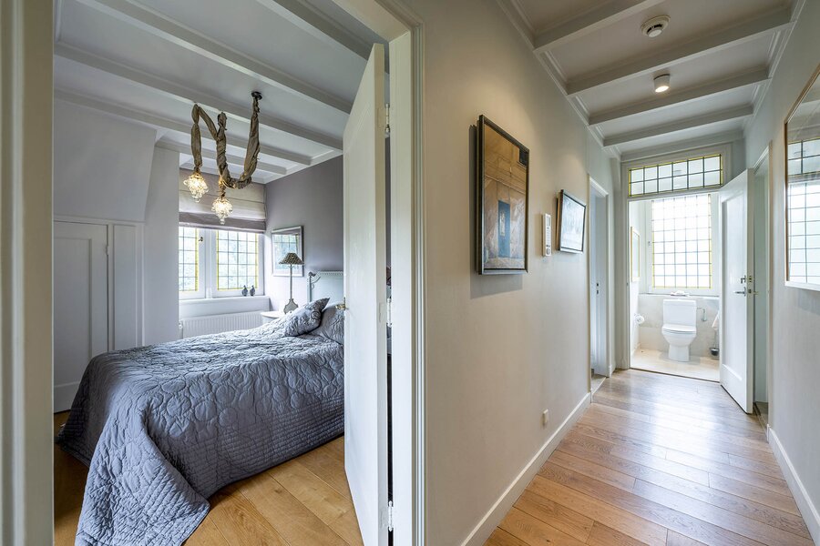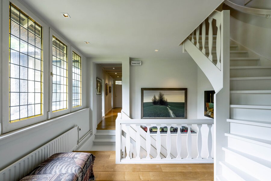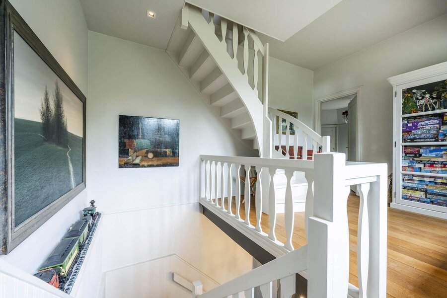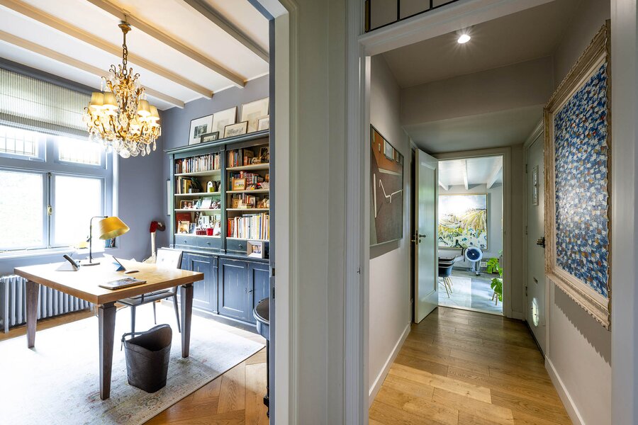 Begane grond: Middels de statige entree betreedt u de ontvangsthal met een prachtig authentiek trappenhuis. De royale zitkamer met een prachtig hoog plafond, gashaard en openslaande deuren naar het terras, bevindt zich aan de voorzijde van de villa: ideaal om gezellige avonden door te brengen in een warme ambiance. Vanuit de centrale hal doorlopend vindt u op de begane grond een stijlvolle eetkamer, een lichte serre- annex tv-kamer. Aan de andere zijde van de hal, is de moderne en luxe woonkeuken gesitueerd. Hierbij is de eetkamer perfect gelegen om formele diners of informele bijeenkomsten te organiseren. Doorlopend in de hal bereikt u een studeerkamer alsmede het zeer ruime gastentoilet. Aan de achterzijde van de villa bevindt zich een zeer prettig kantoor, waar u zich heerlijk kunt terugtrekken voor zakelijke activiteiten en u zich in alle rust kunt concentreren. De begane grond beschikt tevens over een ruime bijkeuken met toegang tot de stook-/wijnkelder, een extra bergruimte maakt het geheel compleet.