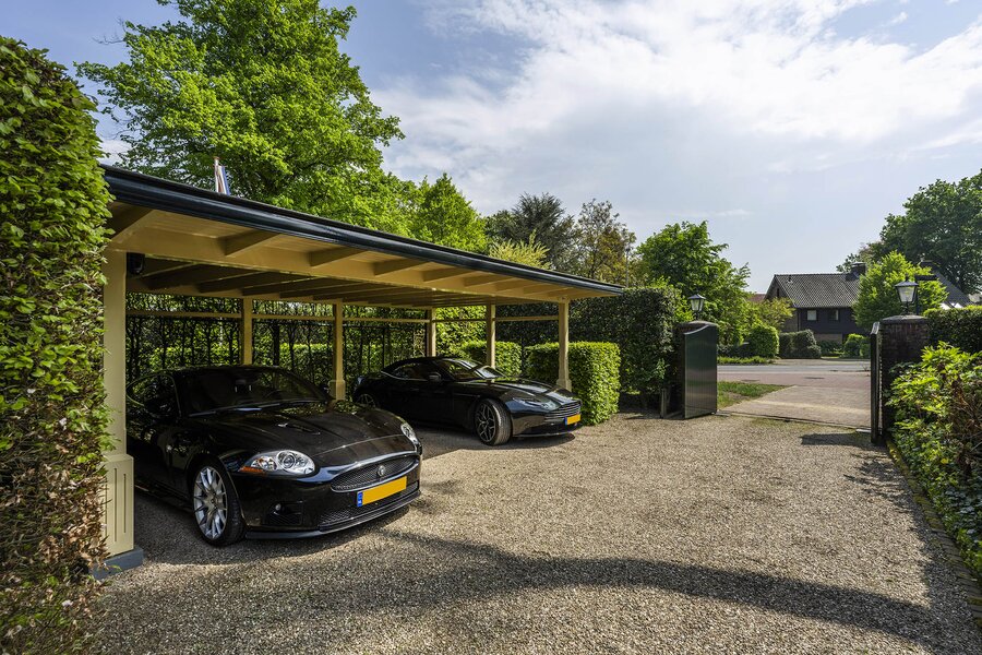 Bij de entree van het perceel is direct achter de toegangspoort een carport gerealiseerd voor tenminste 2 auto’s.